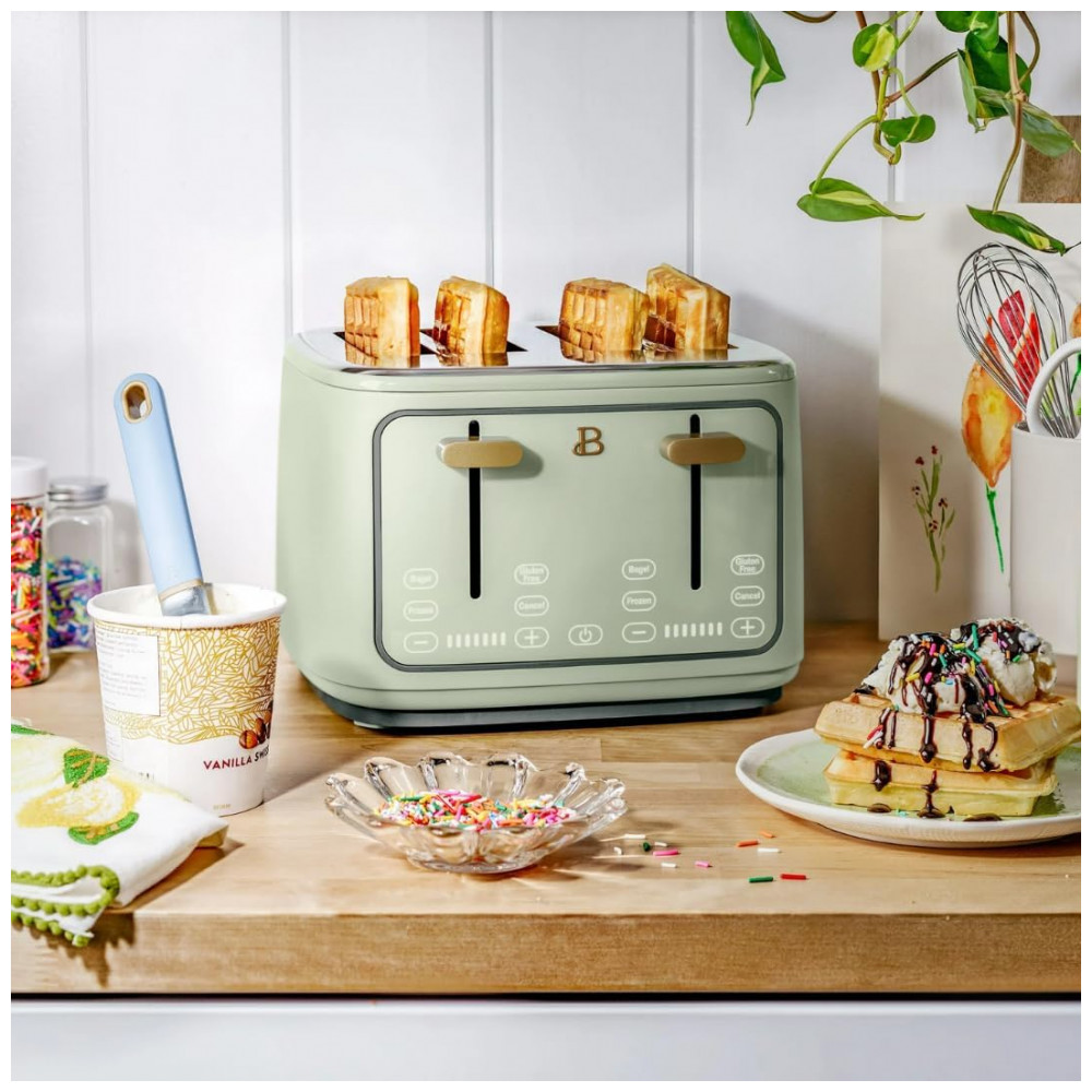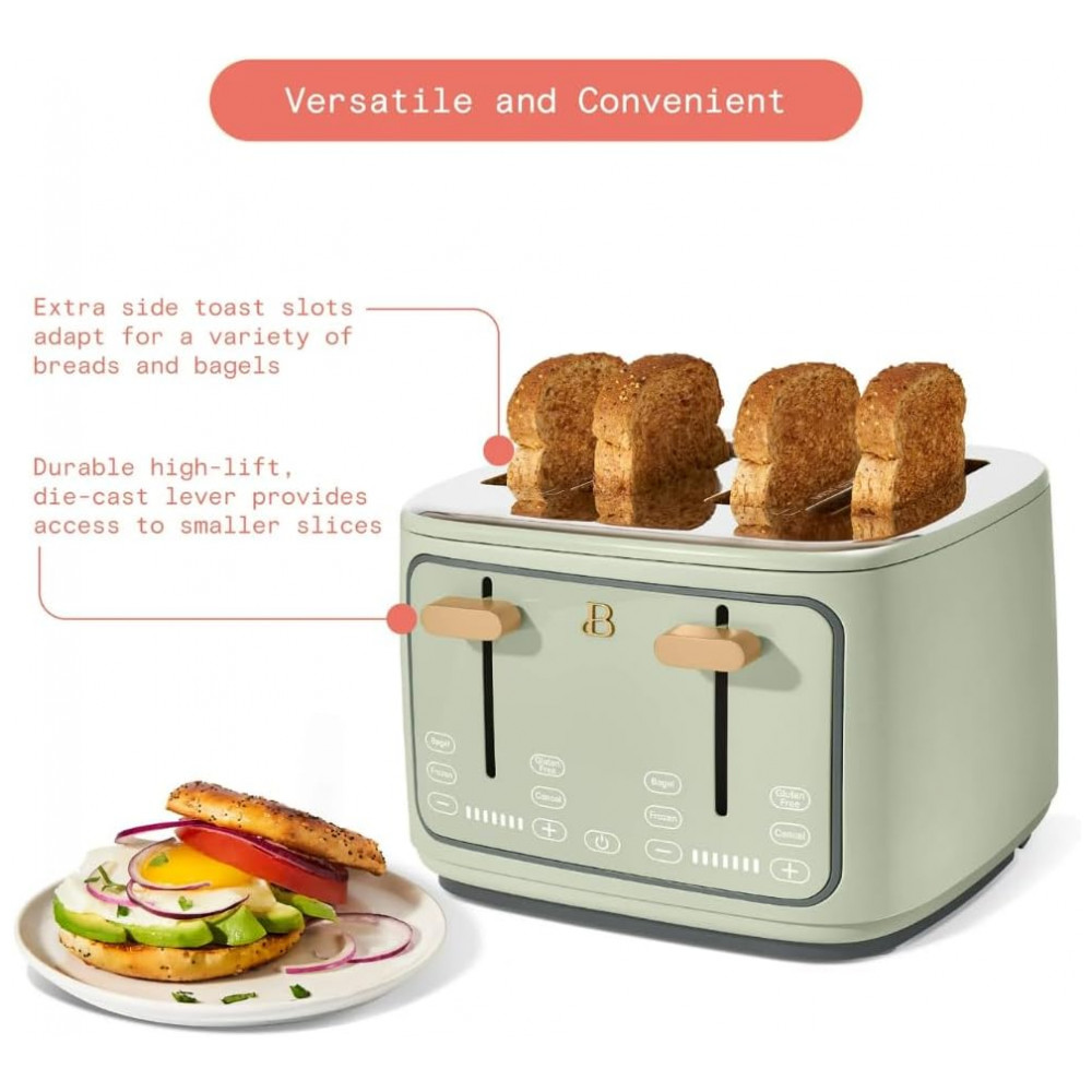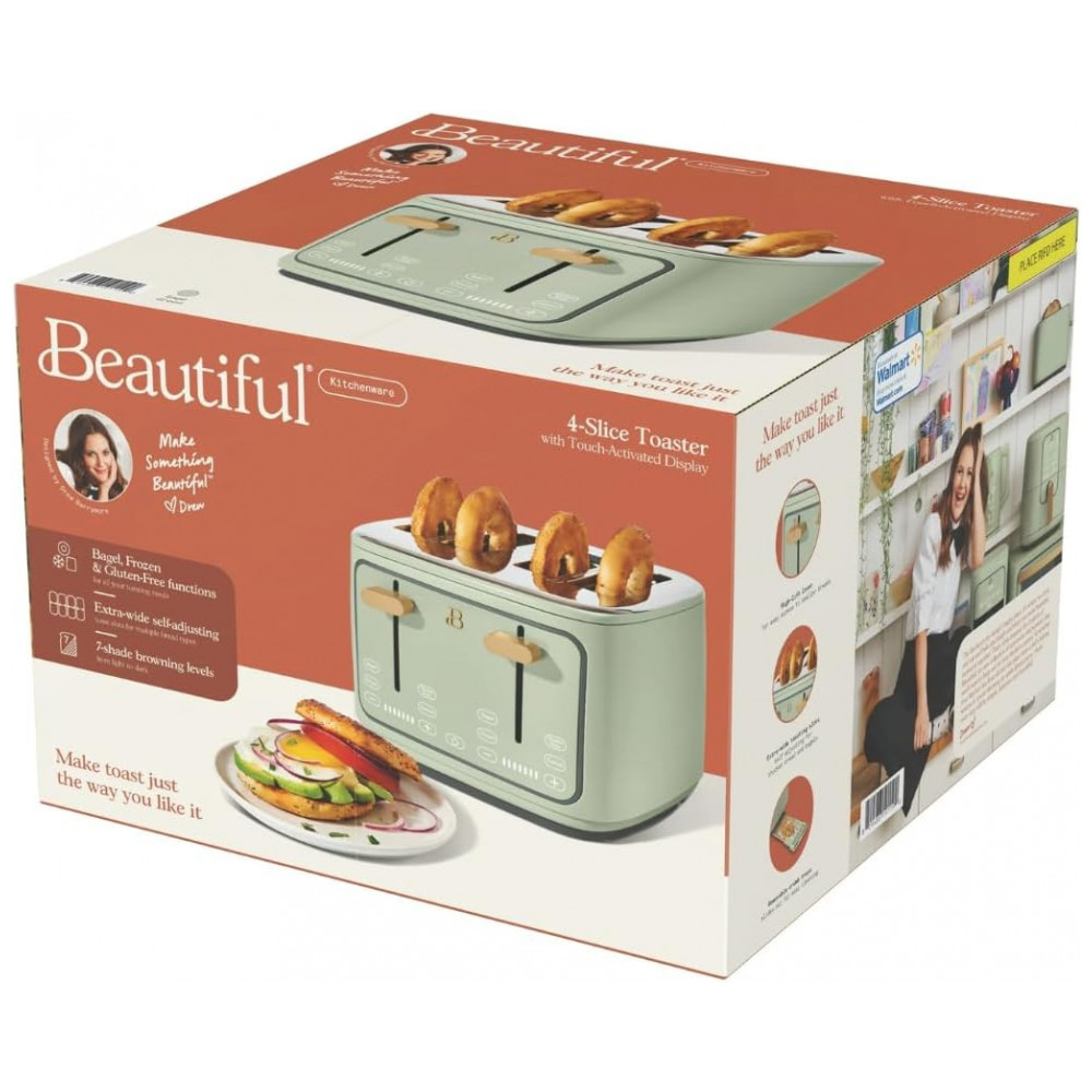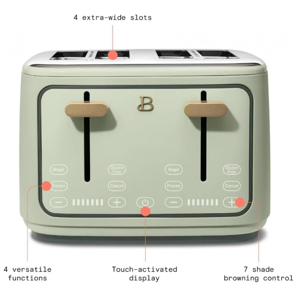 Torradeira elétrica de pão 4 fatias Beautiful Verde 1800W slots extralargos display touch funções bagel e congelados aço inox 110V