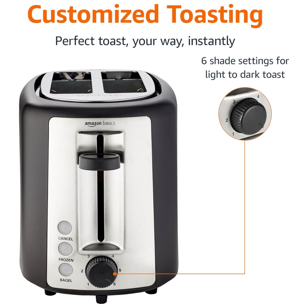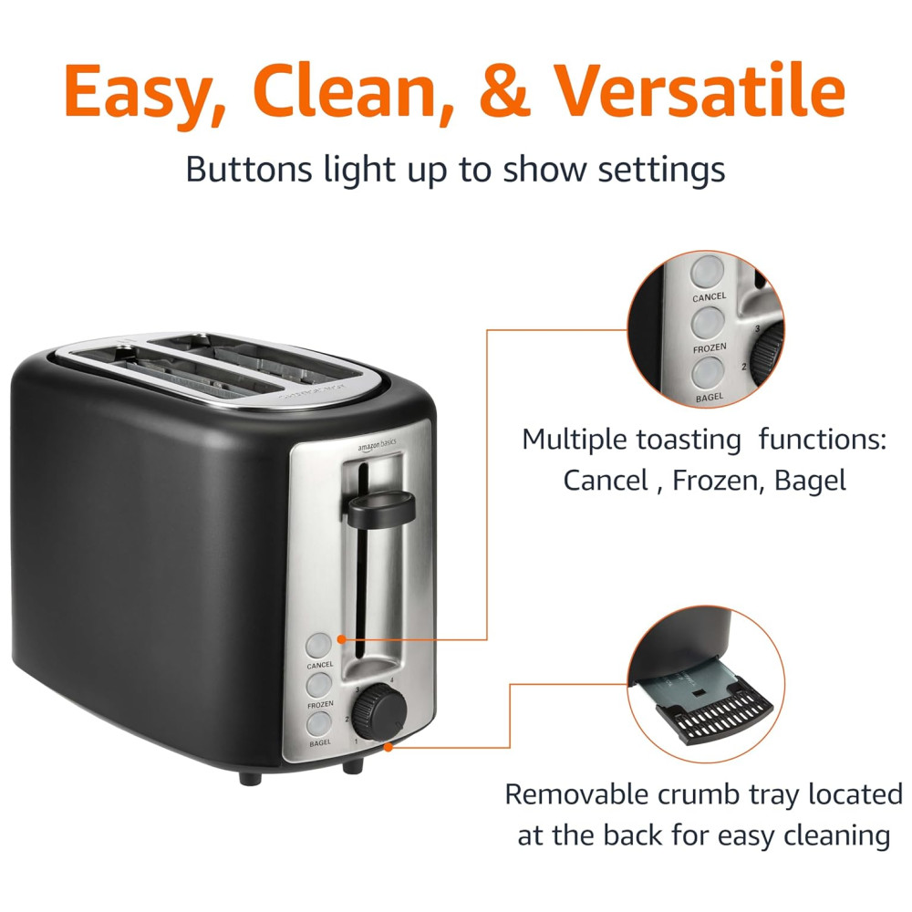 Torradeira de 2 fatias para torrar uma ou duas fatias de pão de cada vez 6 configurações de sombra acomodam preferências individuais. Slots extra largos para bagels e fatias mais grossas cada slot mede 5 1 , 4 polegadas de comprimento por 1 1 , 4 polegadas de largura. configuração de bagel para brindar apenas o lado cortado Cenário congelado para descongelar pão A função Cancelar termina a sessão a qualquer momento Alavanca de extração extra para remover com segurança peças menores Cabo de alimentação de 22 polegadas quando roteado pela parte traseira enrolamento de cordão bandeja de migalhas removível localizada na parte traseira. Os botões acendem para indicar as configurações selecionadas