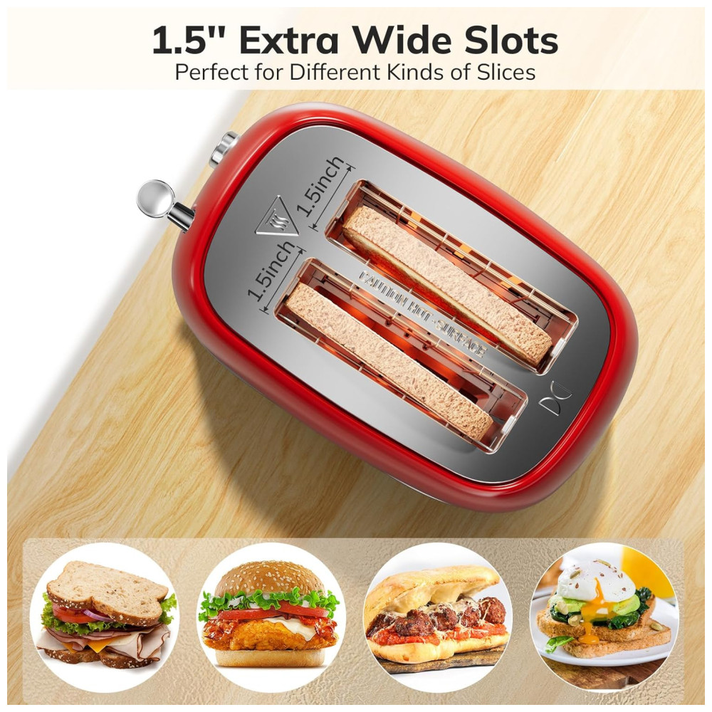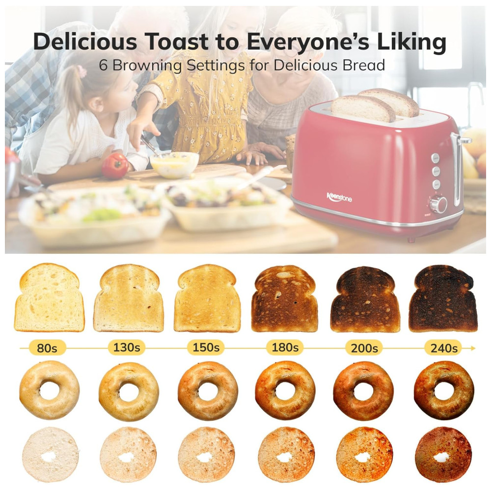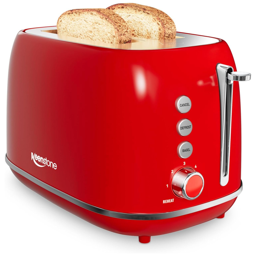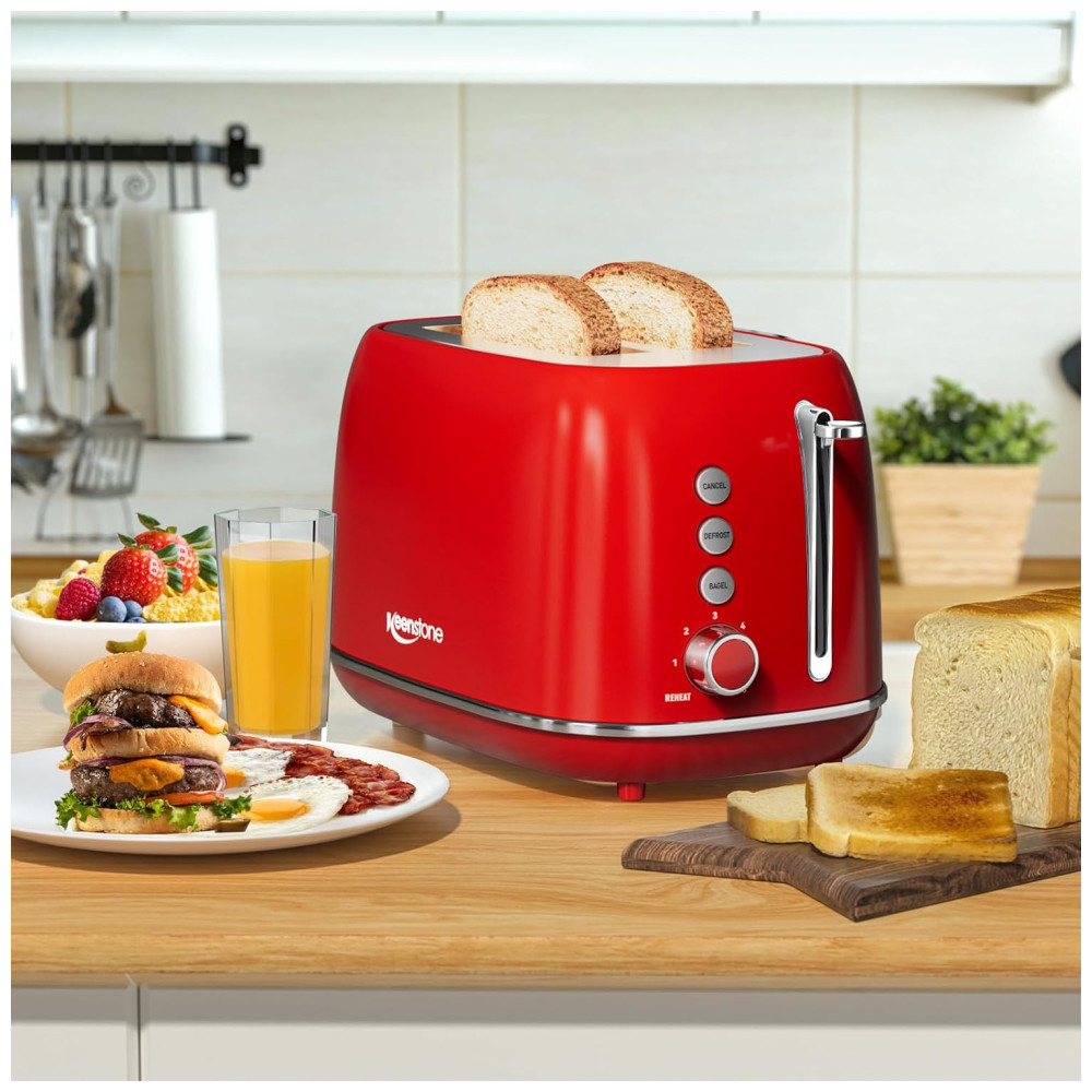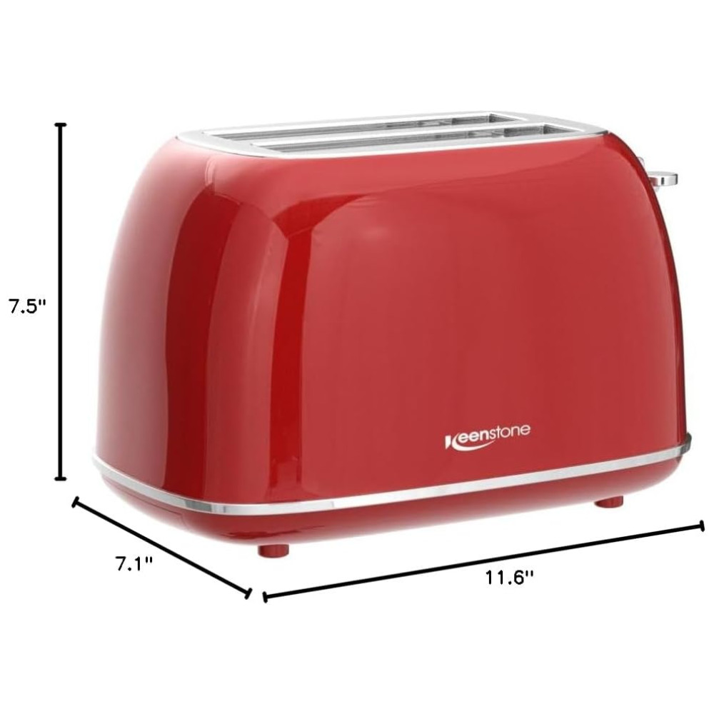 Torradeira Retro Keenstone 2 Fatias Inox Vermelha Fendas Largas 6 Níveis de Tostagem 825 W 110 V