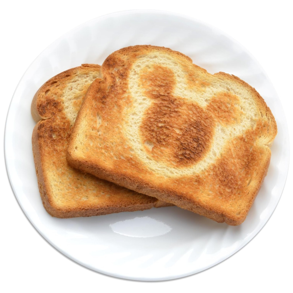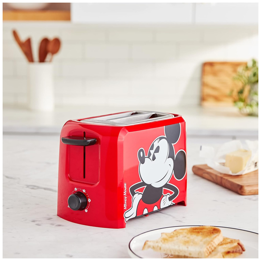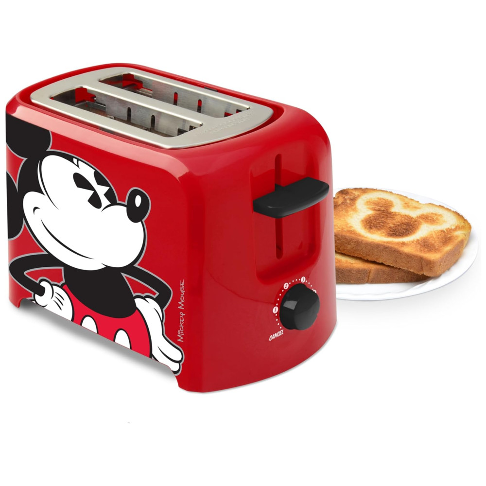 Nome do estilo Mickey Mouse Torradeira Disney Mickey Mouse. A torradeira com duas fatias marca seu pão ou bagel com a clássica imagem do Mickey. Com slots extra largos, controle de escurecimento ajustável e exterior com toque frio. Plástico e metal