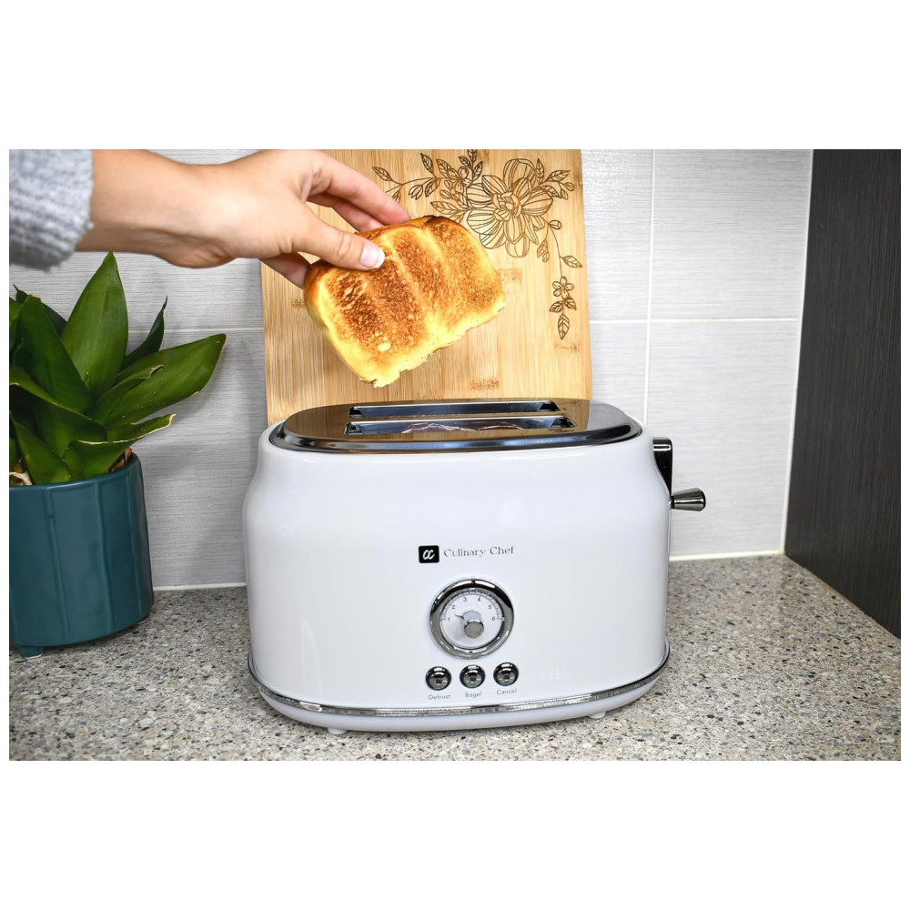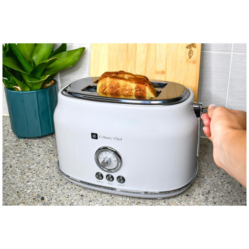 TORRADEIRA EXTRA LARGA Esta elegante torradeira de estilo retrô não só tem uma ótima aparência, mas também é a torradeira mais conveniente. Possui 2 compartimentos extra largos que são perfeitos para torrar metades de bagel, fatias grossas de pão, muffins ingleses e muito mais.