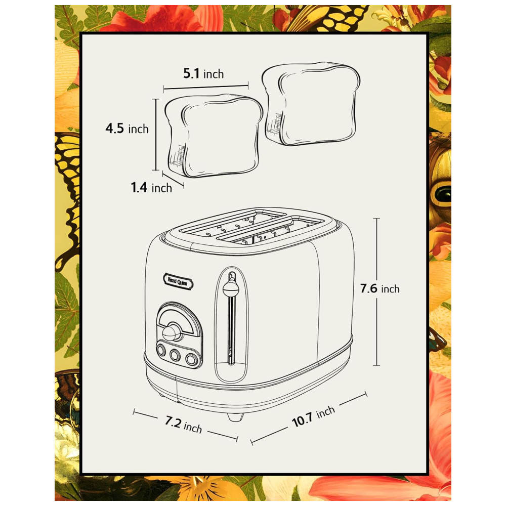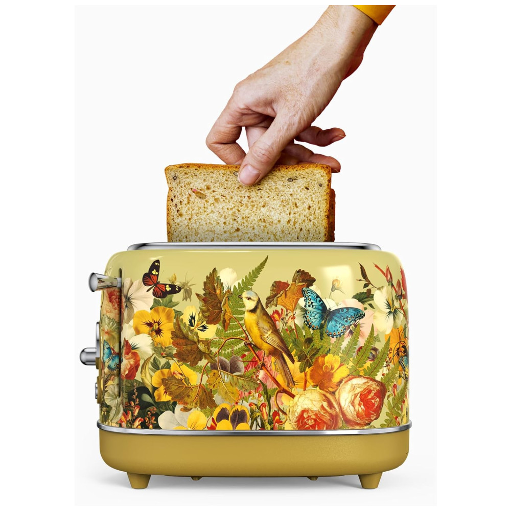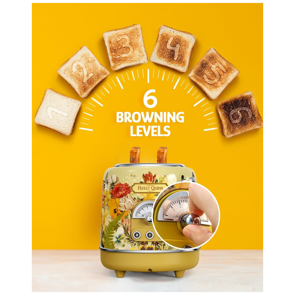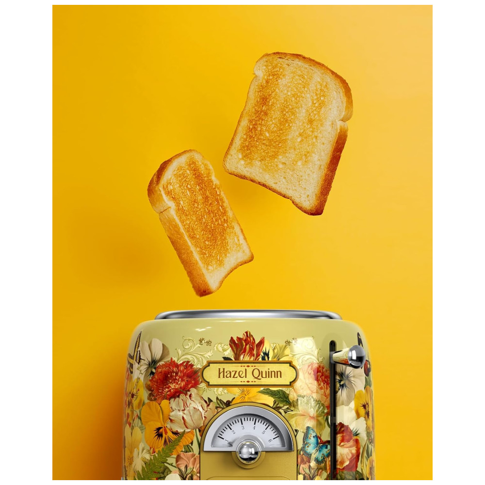 Torradeira Hazel Quinn X Eduardo Recife Floral Retro 2 Fatias 850W 6 Níveis 3 Funções Bandeja Removível Slots Largos Inox 110V