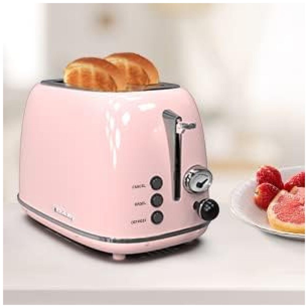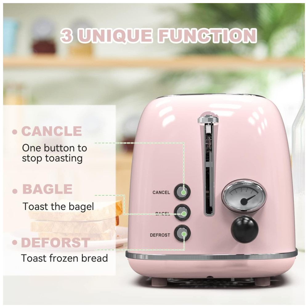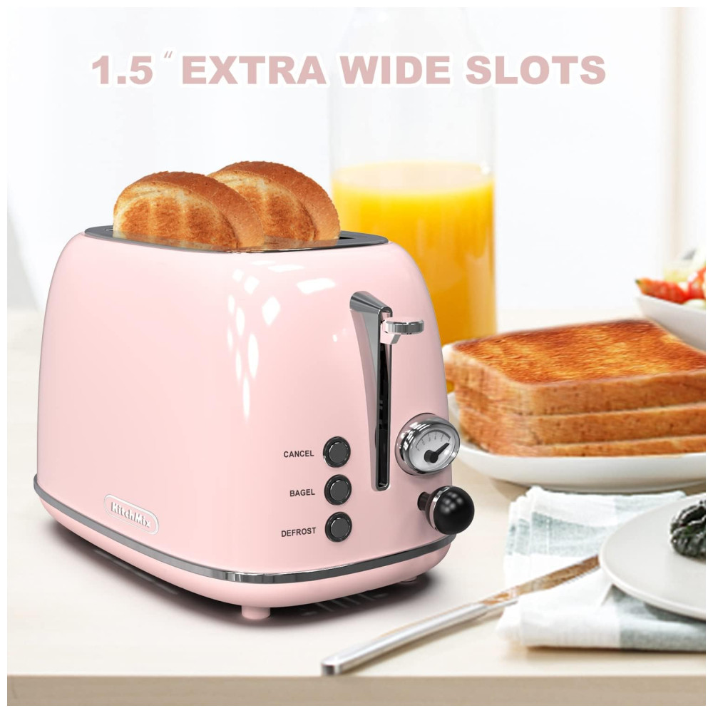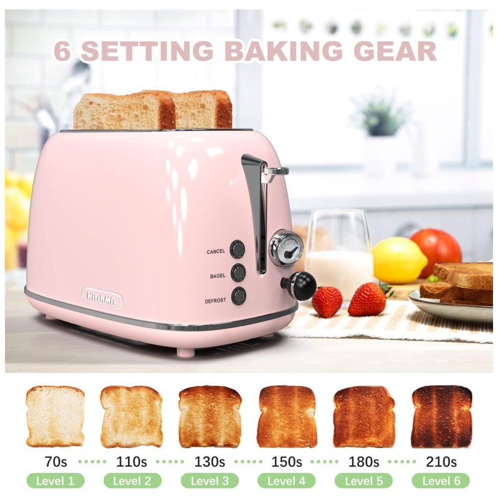 Torradeira Elétrica Retrô 2 Fatias com 6 Níveis de Tostagem de Aço Inoxidável 110V KITCHMIX Rosa