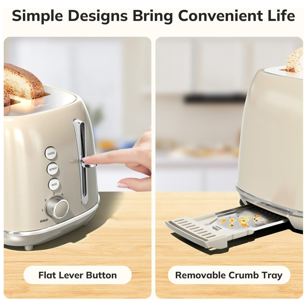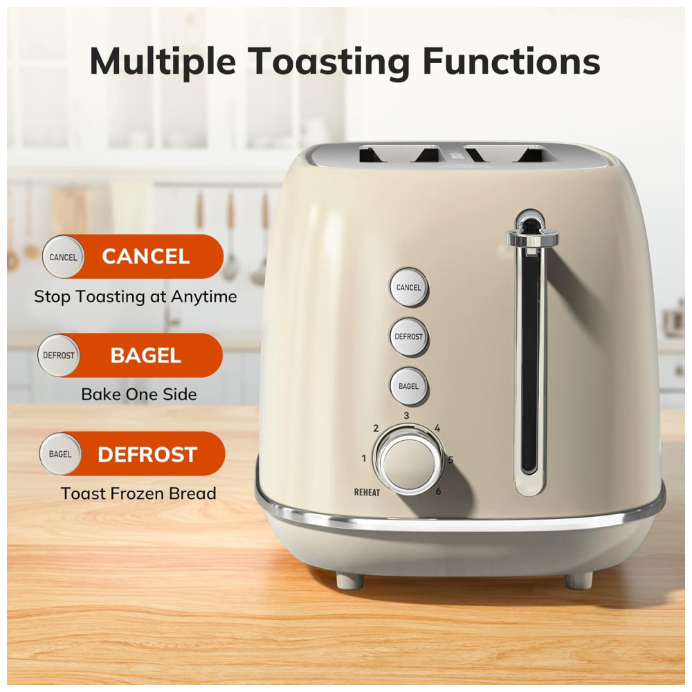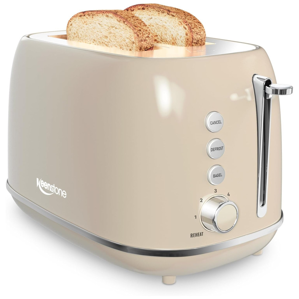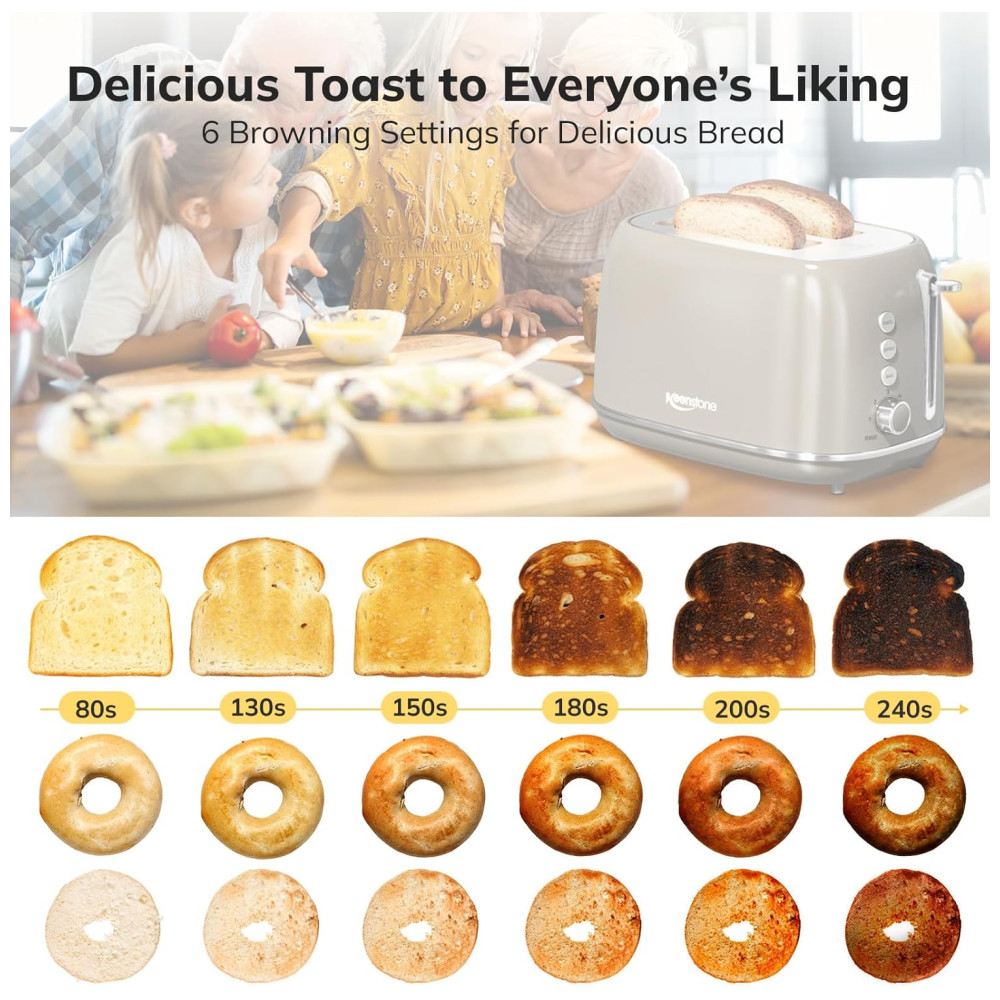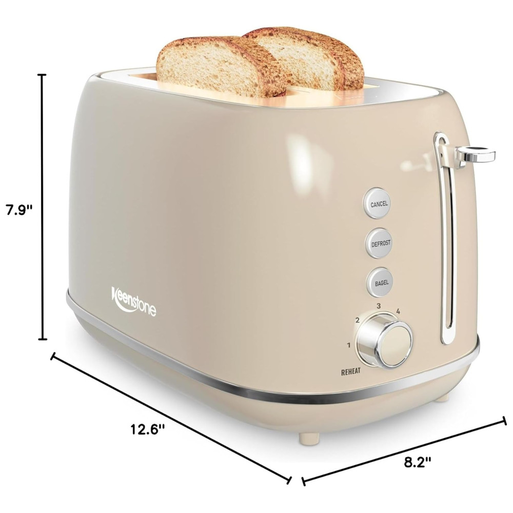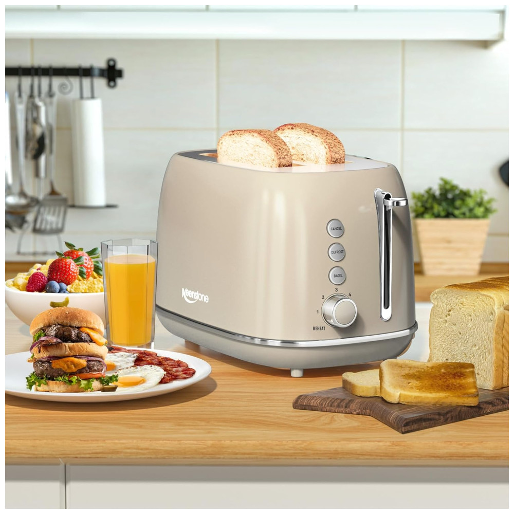 Torradeira Elétrica Retrô 2 Fatias em Aço Inoxidável com 6 Níveis de Tostagem e Bandeja de Migalhas Removível 800W Keenstone Taupe