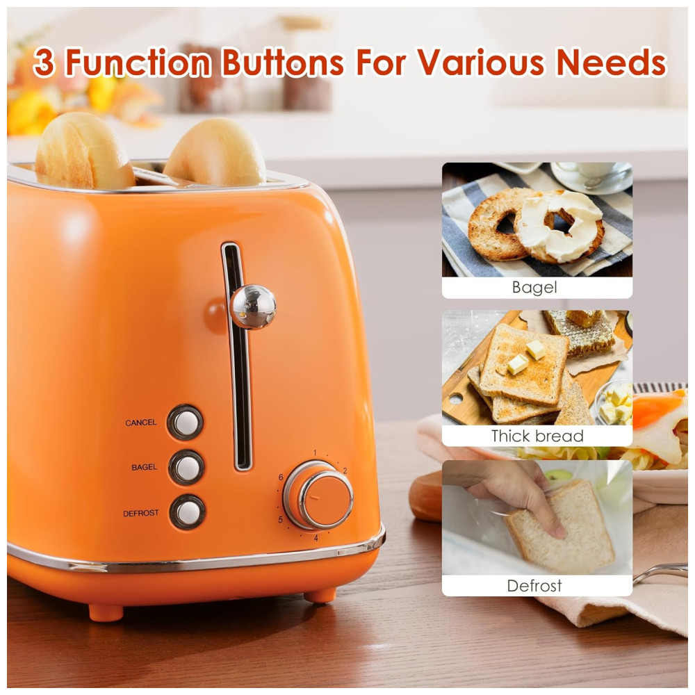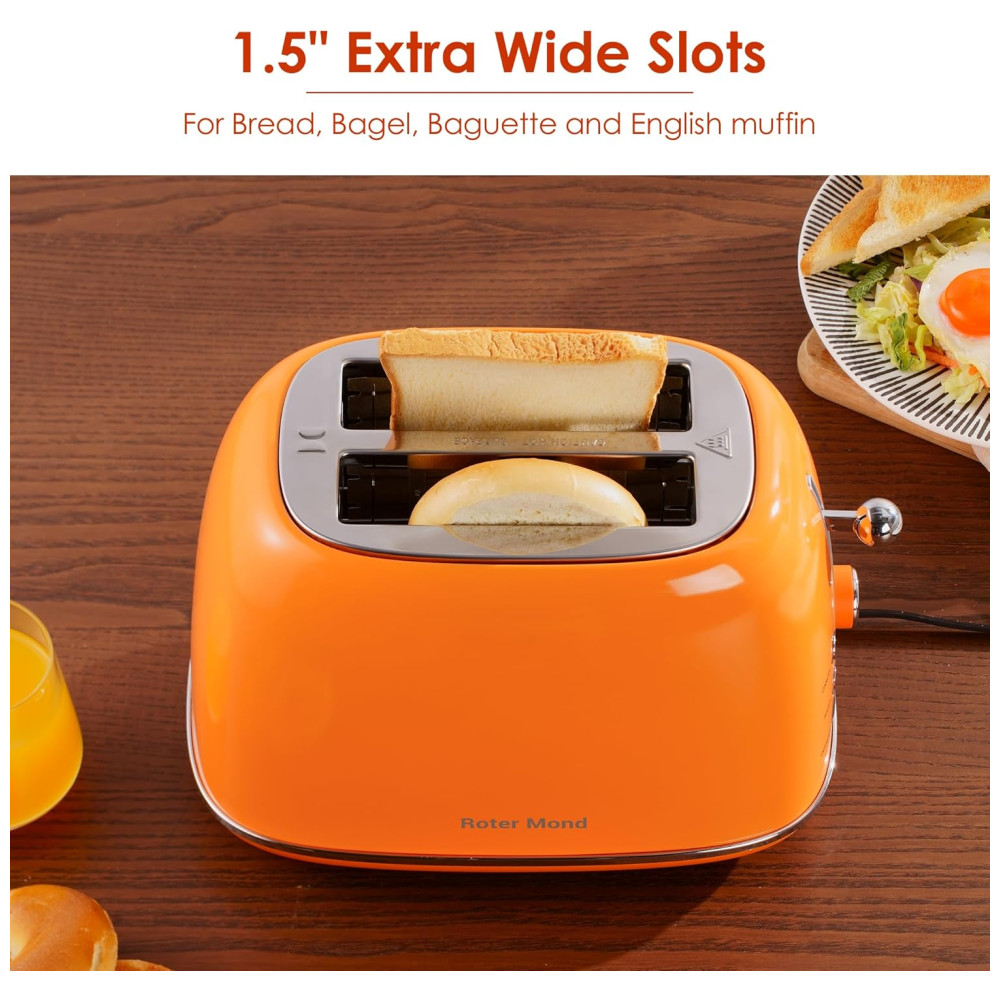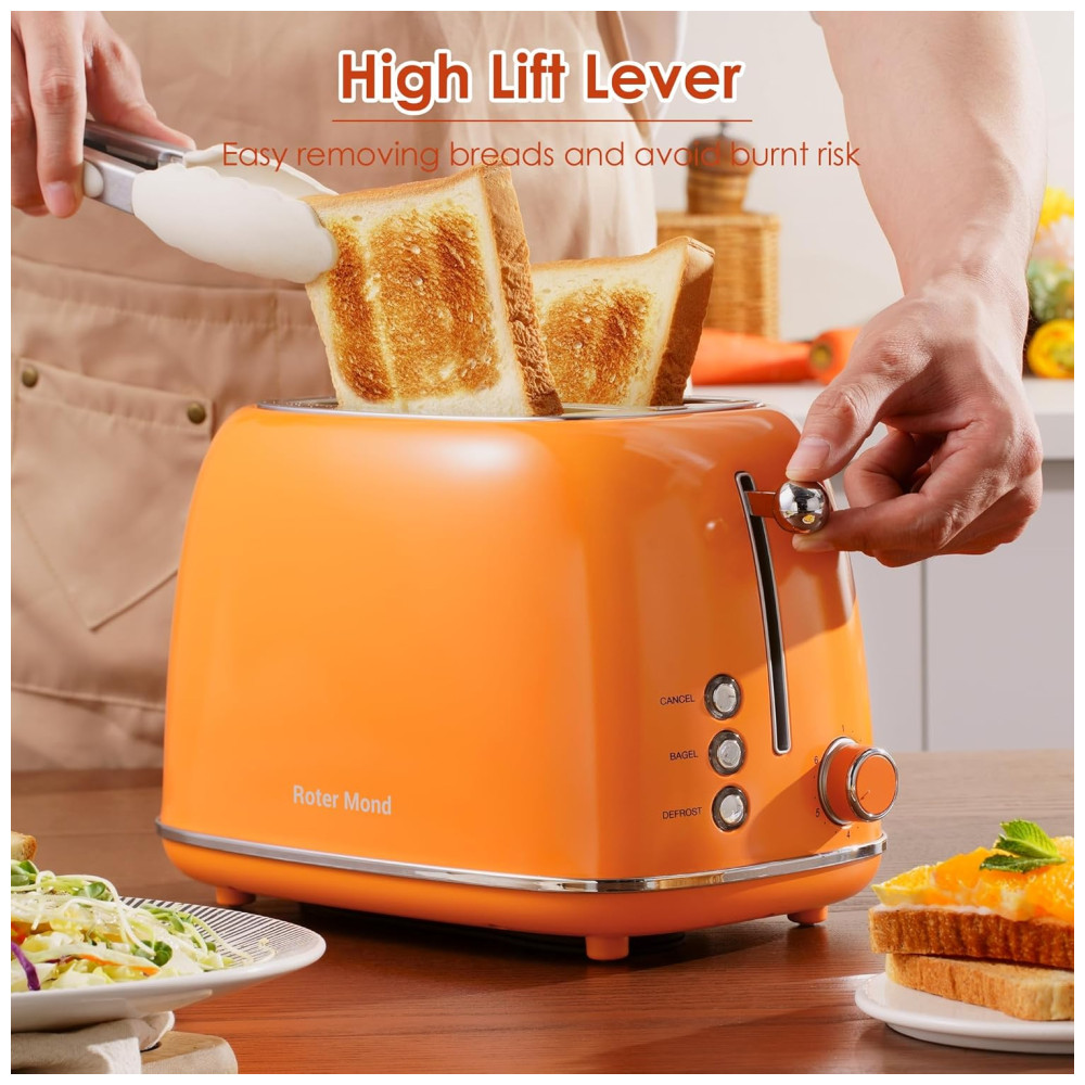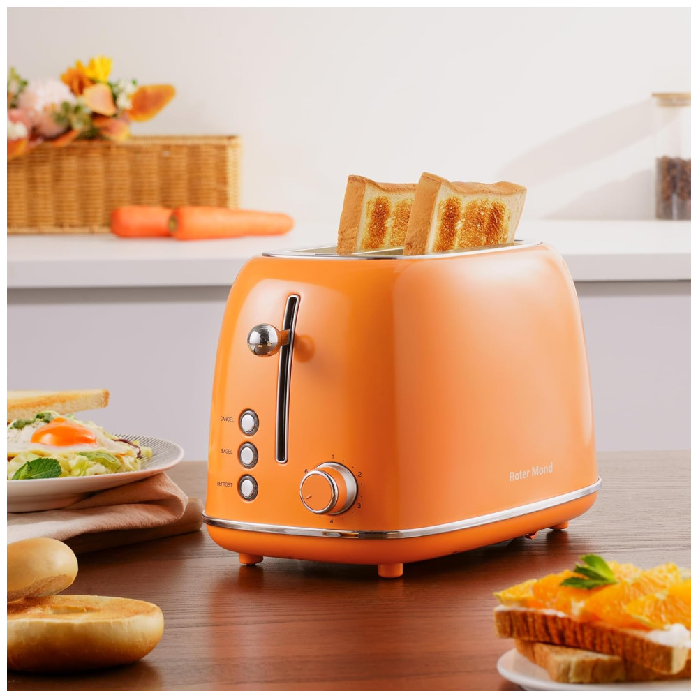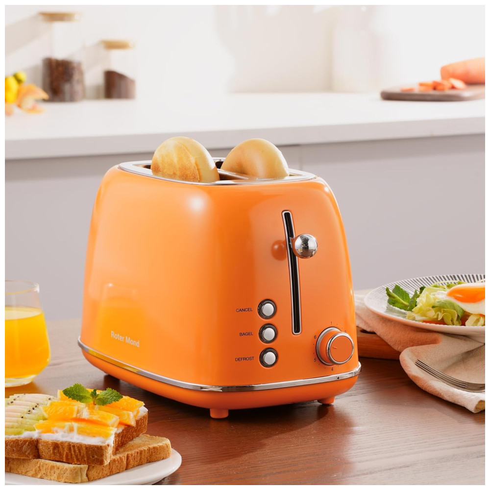 Torradeira 2 Fatias Roter Mond Retro Aço Inoxidável Funções Bagel Cancelar Descongelar 6 Níveis Laranja 110V