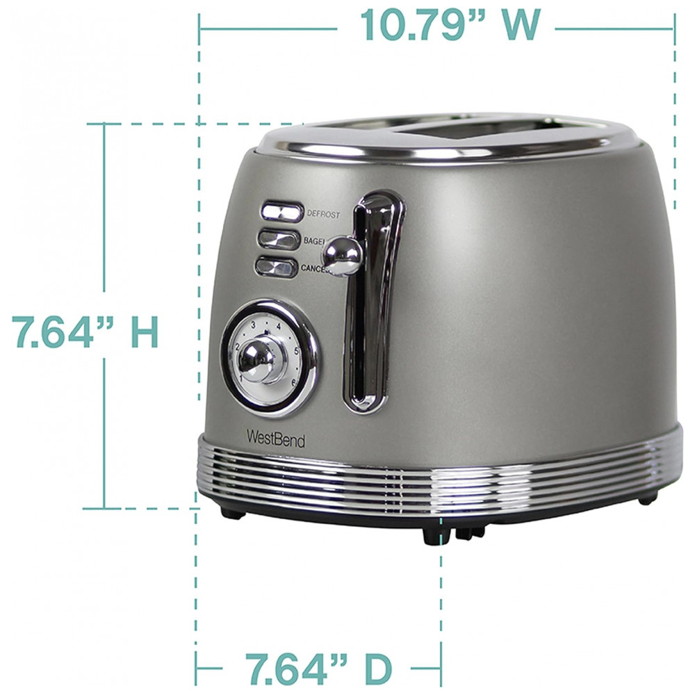 Torradeira elétrica West Bend 2 fatias inox retrô cinza fendas largas 6 níveis de tostagem 850W 110V