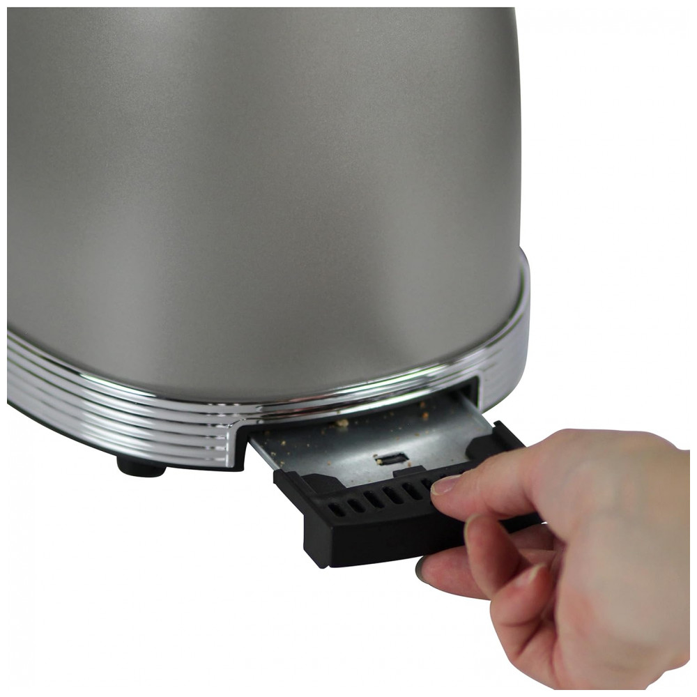 A alavanca de elevação proporciona curso adicional para facilitar o acesso às fatias após a tostagem, especialmente em pães menores. A bandeja coletora de migalhas com acesso facilitado auxilia na limpeza cotidiana, enquanto a organização do cabo sob a base ajuda a manter a bancada mais livre quando o produto está fora de uso.