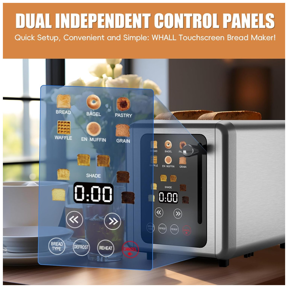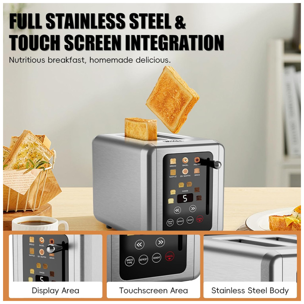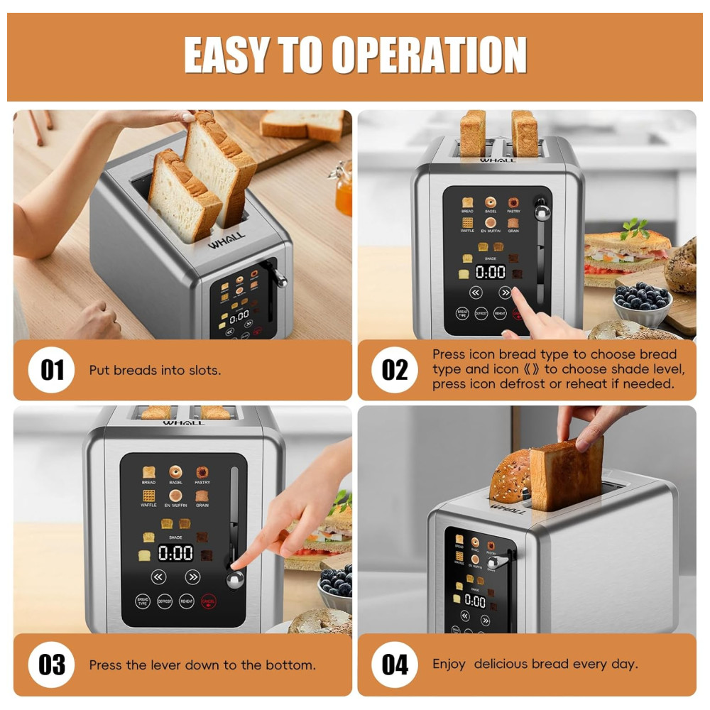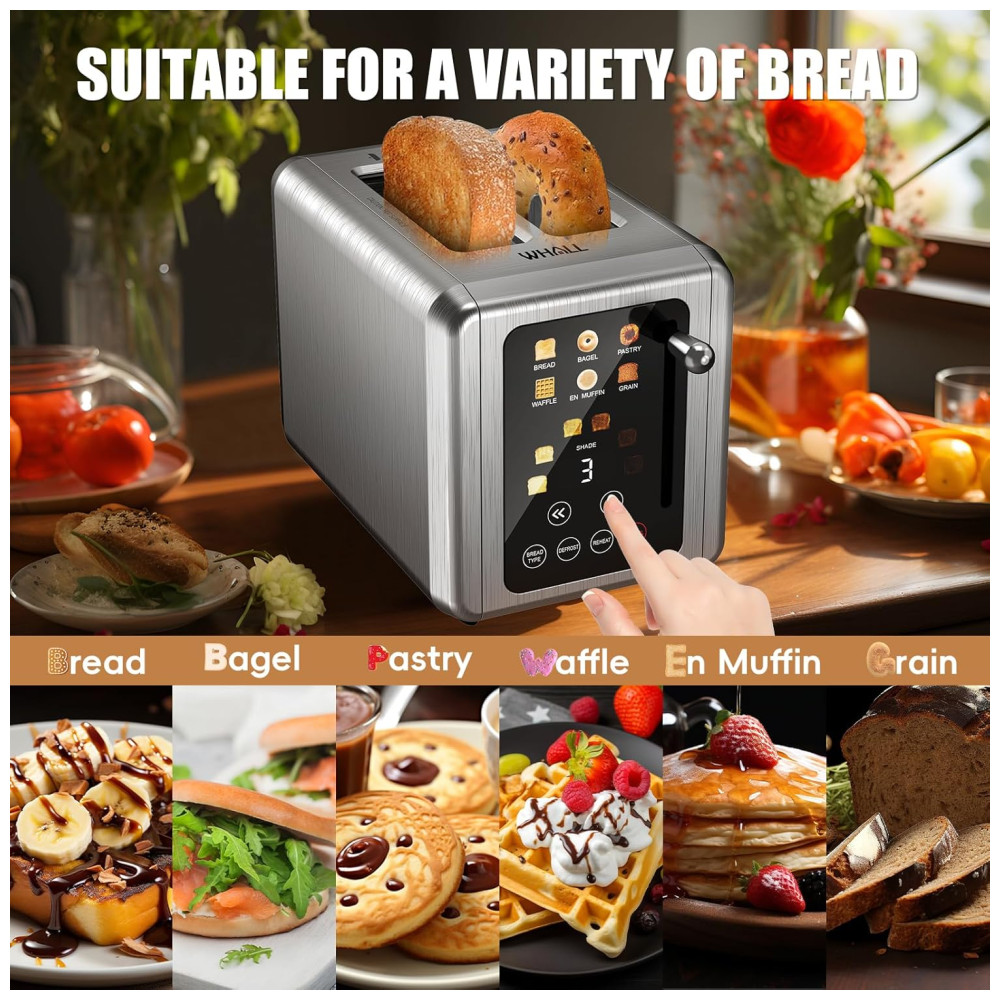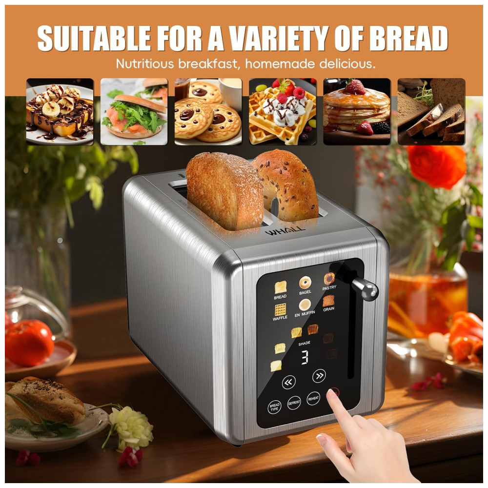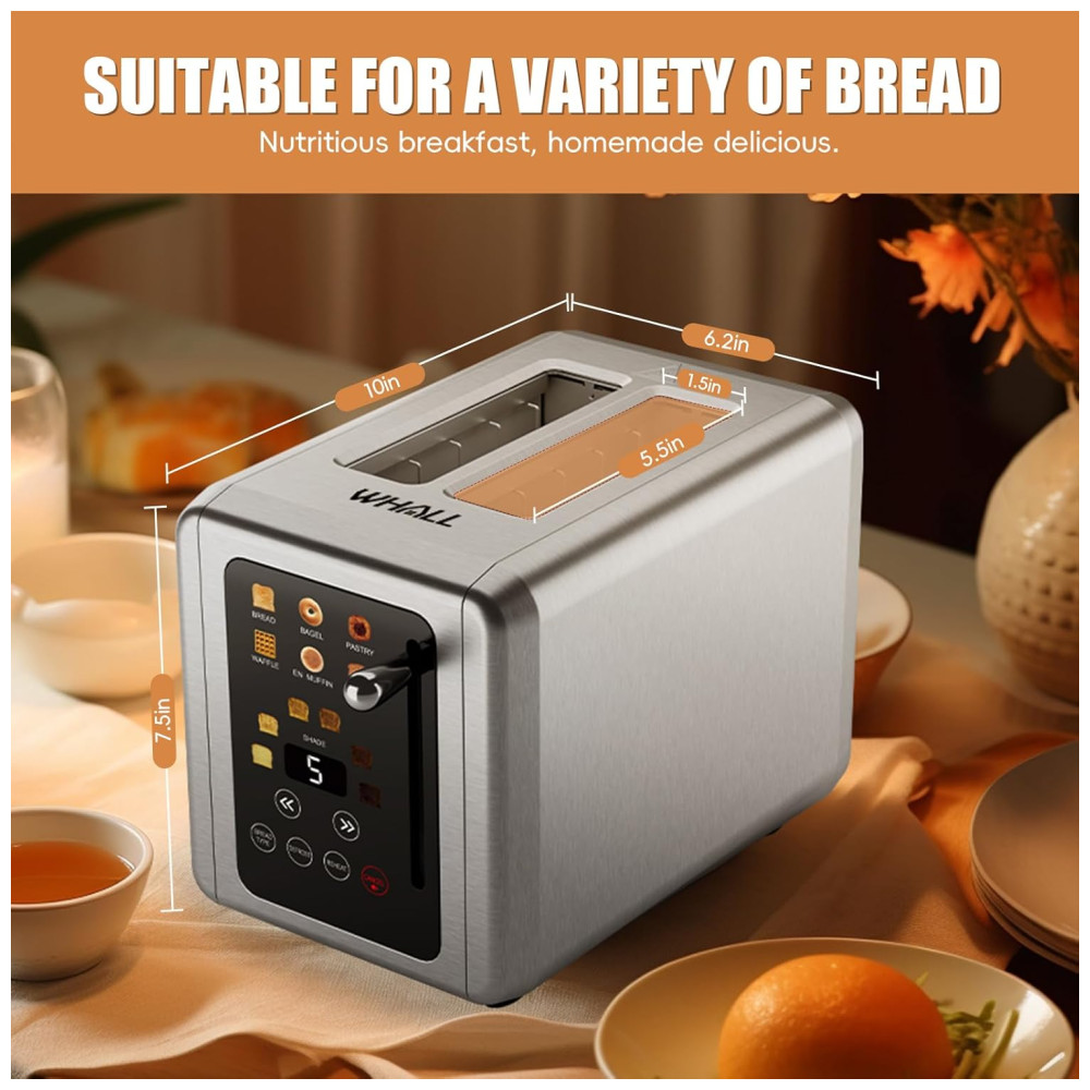 Torradeira em Aço Inoxidável 2 Fatias com Tela Digital Temporizador e 6 Opções de Tostagem 110V 850W WHALL Prata