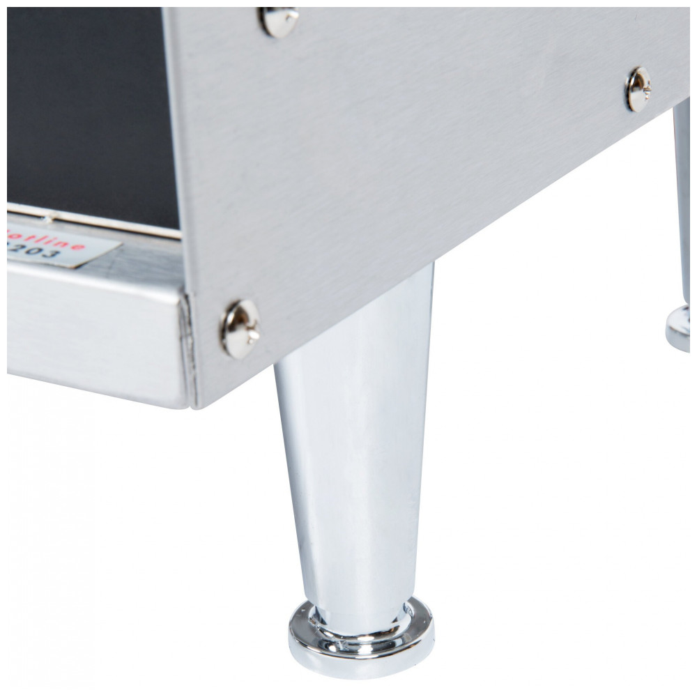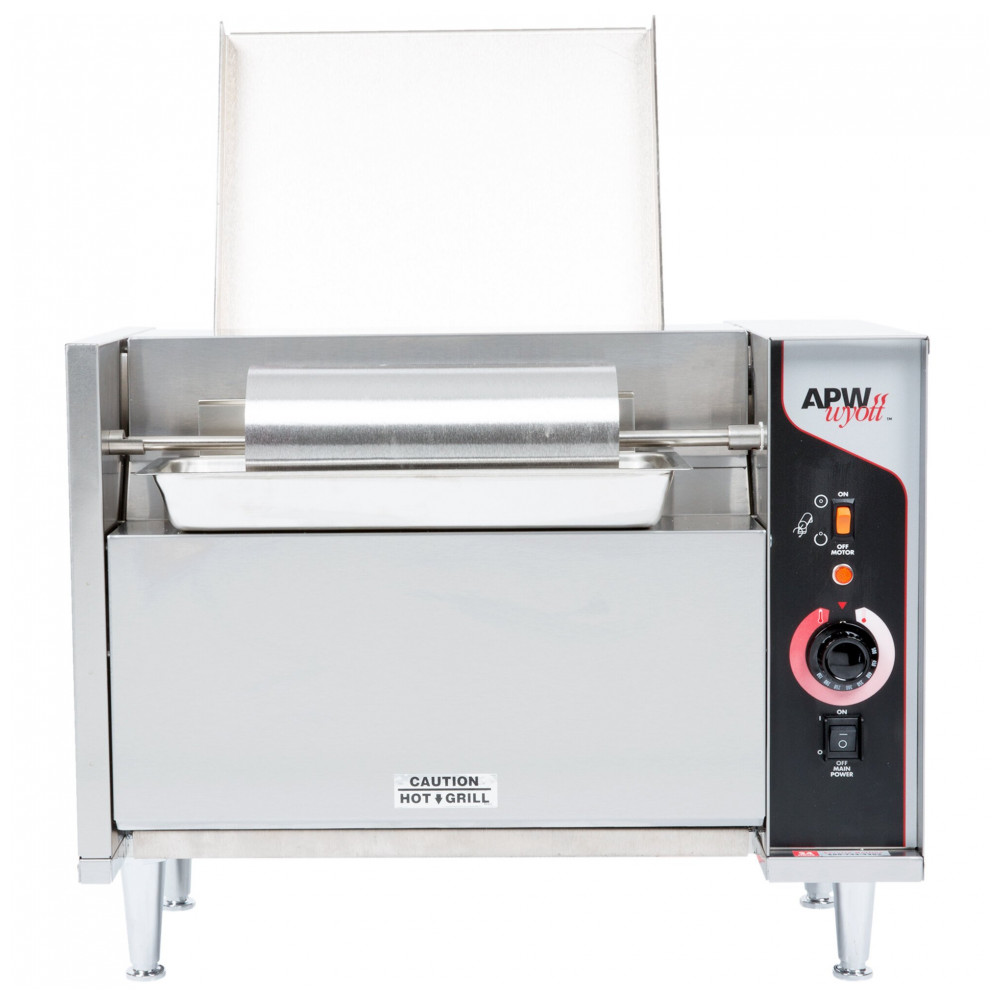 A Torradeira Grill de Pão Vertical APW Wyott 3TM335208 é perfeita para o seu negócio, podendo tostar até 1.000 metades de pão por hora. Com potência de aquecimento de 2.780W, alcança temperaturas de 93°C a 260°C. Possui um prático rolo de manteiga incluso. A alta eficiência e a versatilidade dessa torradeira fazem dela um equipamento essencial para cafeterias, padarias e food trucks.