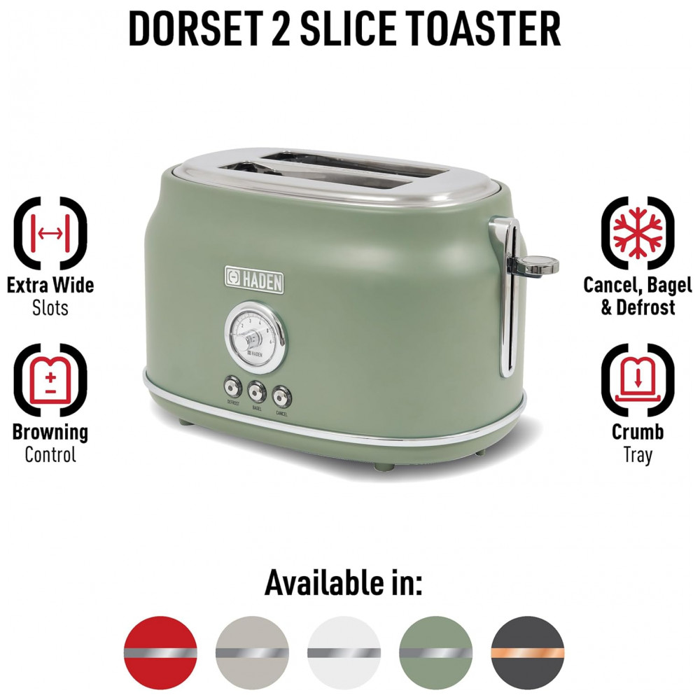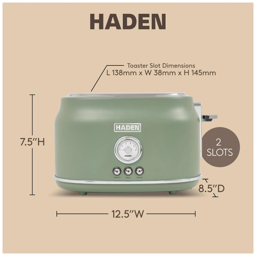 Torradeira HADEN Dorset inox 2 fatias verde cedro com fenda larga e controle de tostagem 900W 110V