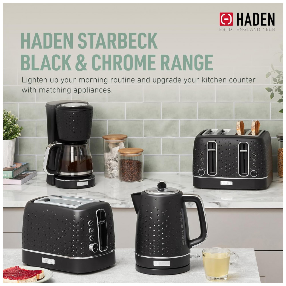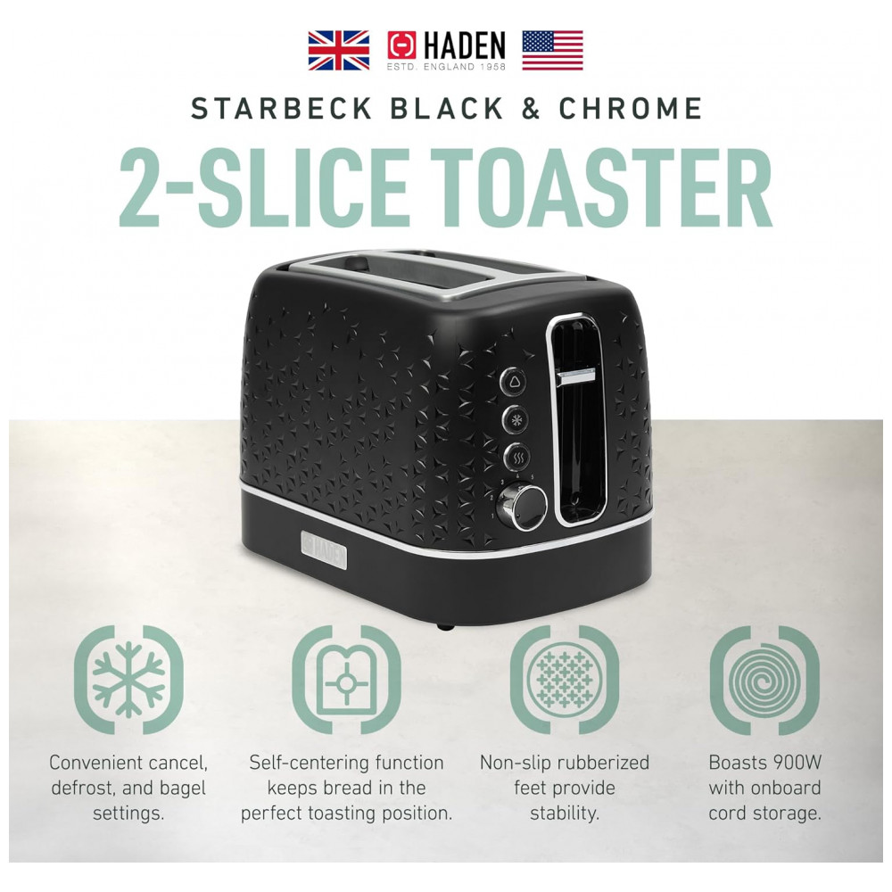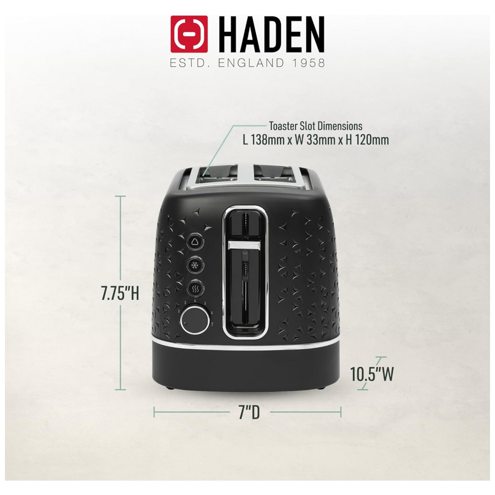 Torradeira HADEN Starbeck 2 fatias preta e cromada com fenda larga e 7 níveis de tostagem 1600W 110V