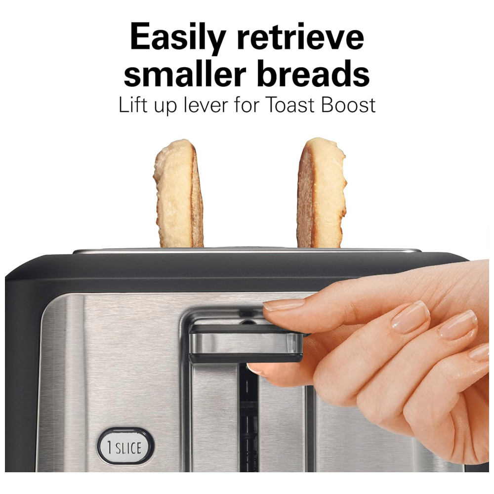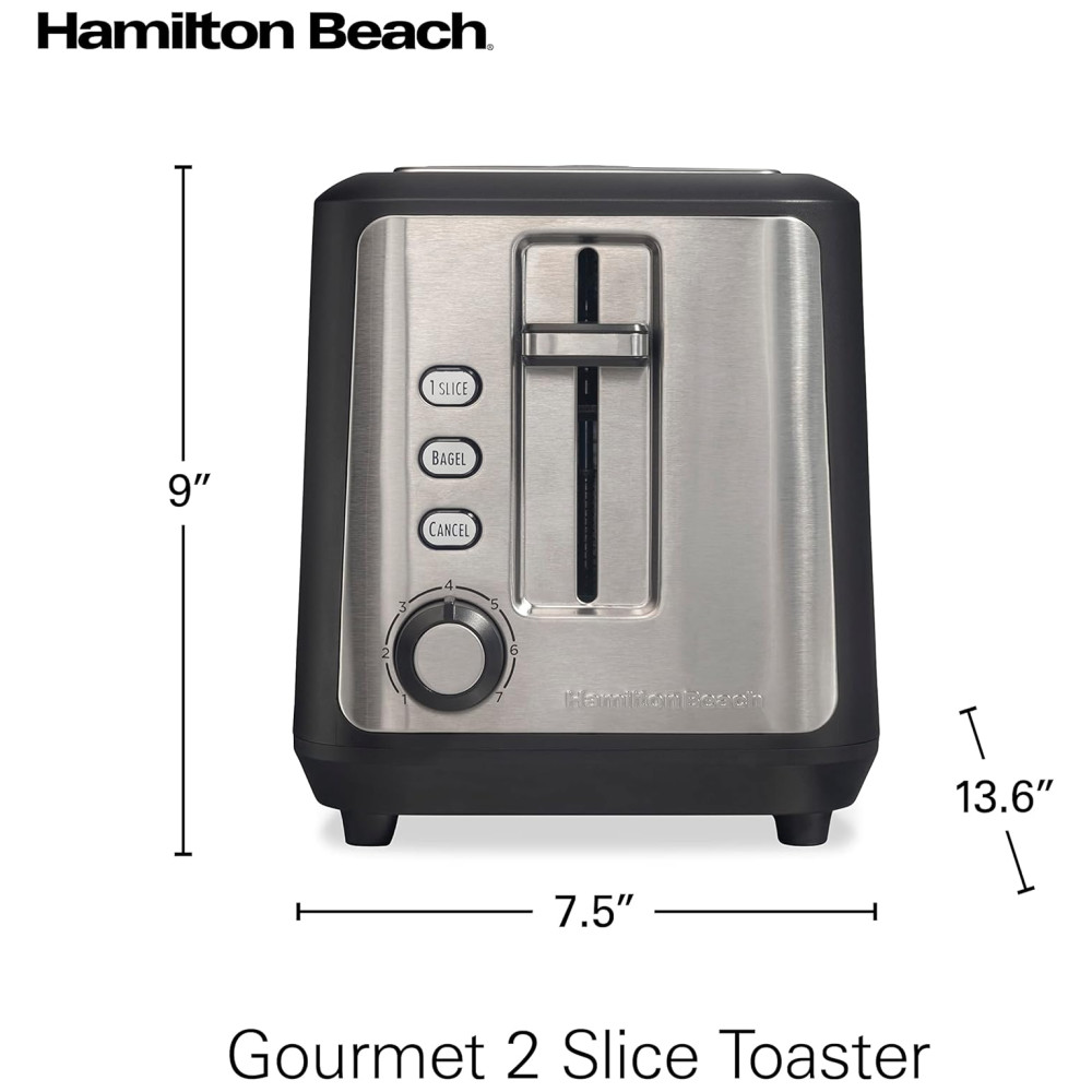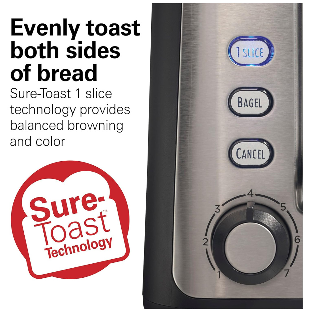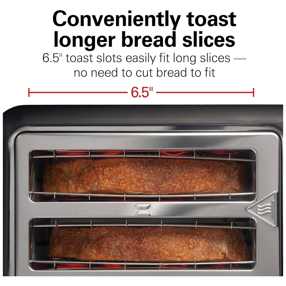 Torradeira Hamilton Beach Gourmet 2 Fatias com Slots de 30cm Tecnologia SureToast Seletor de Tostagem Função Bagel Preto Fosco e Aço