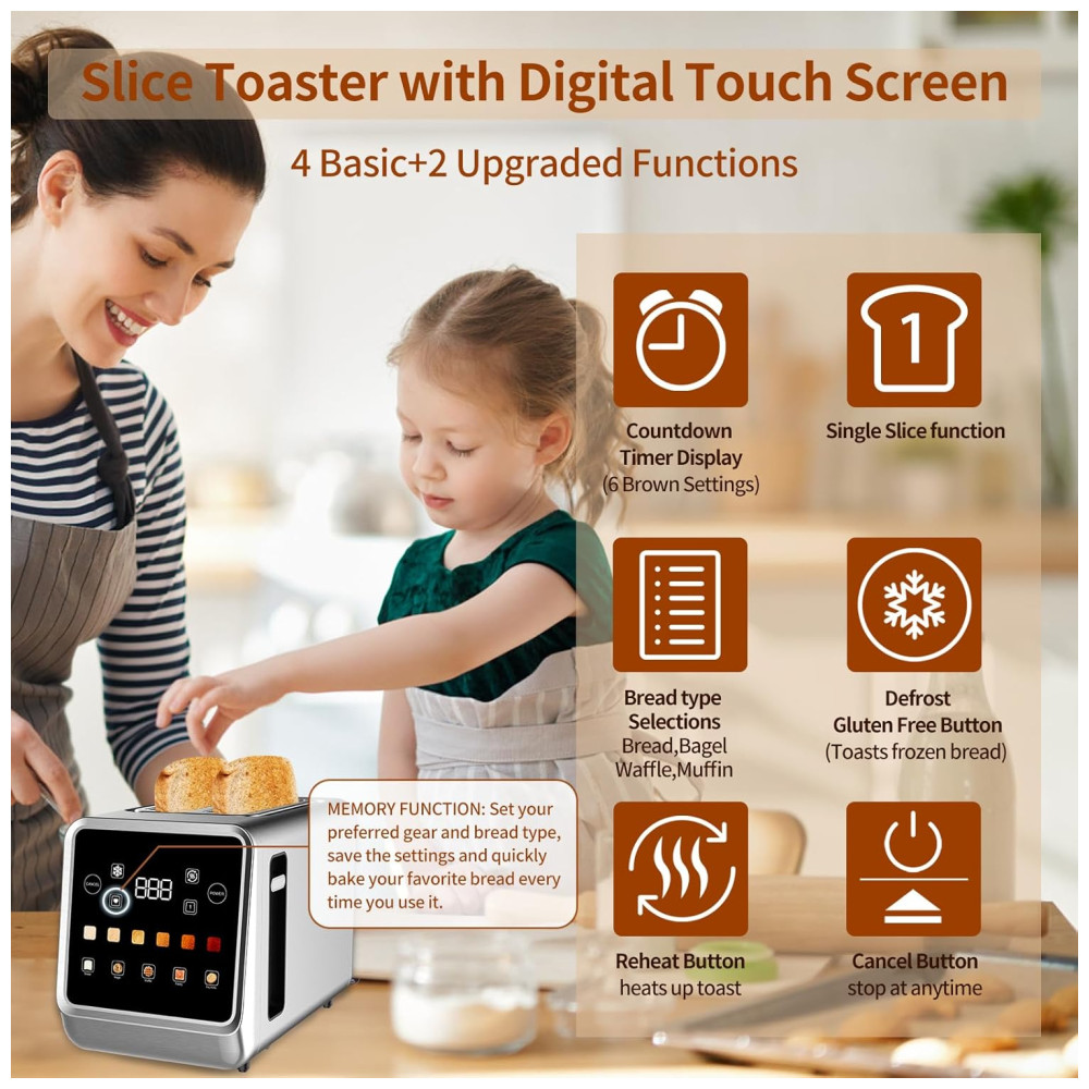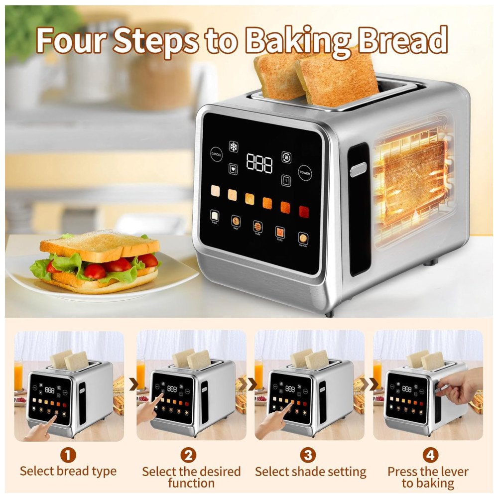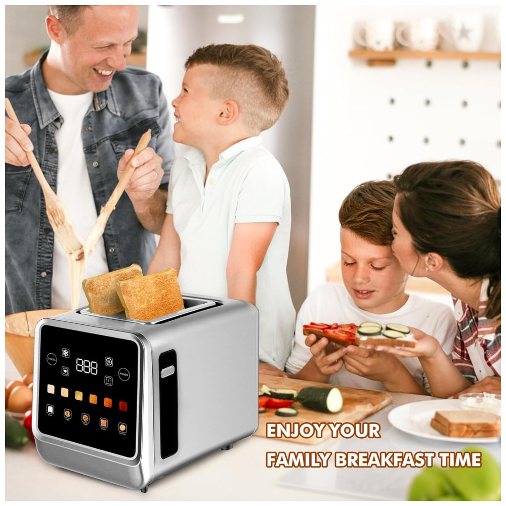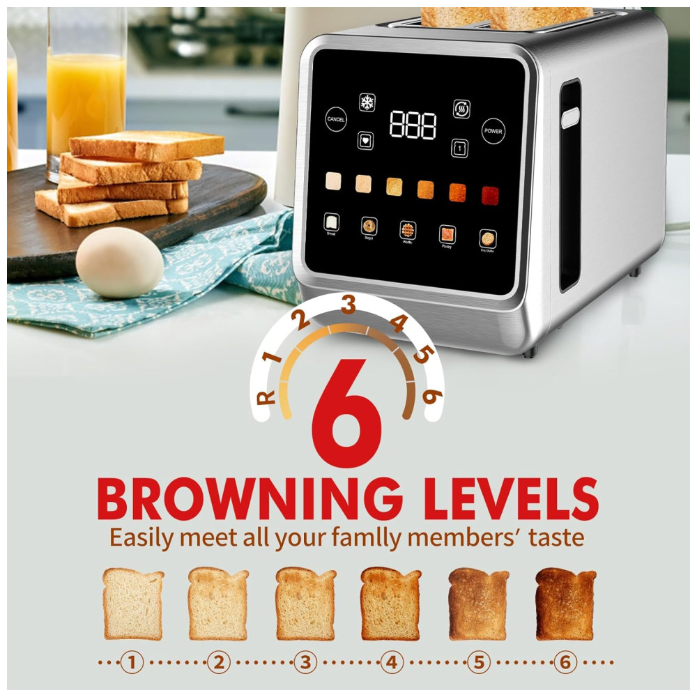 Torradeira para 2 Fatias com Visor LCD Digital e 6 Níveis de Tostagem 110V 900W Dear Morning Prata