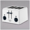 A torradeira pop up STAY by Cuisinart WPT440BKX é um equipamento elétrico de bancada projetado para tostar 4 fatias de pão simultaneamente em cozinhas domésticas ou hotéis. Possui design clássico com 4 ranhuras de 3,8 cm de largura cada, que baixam o pão automaticamente e o elevam ao final do ciclo de torrefação.