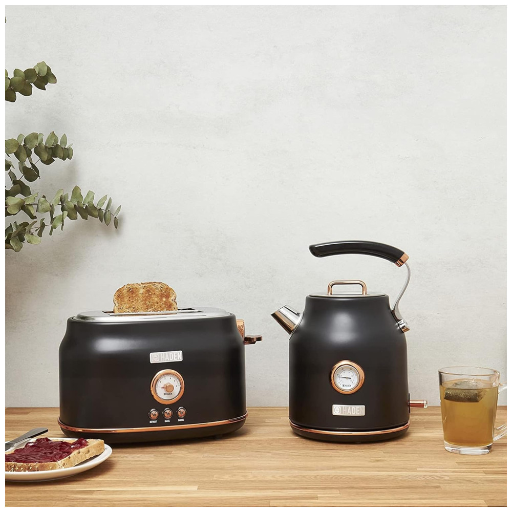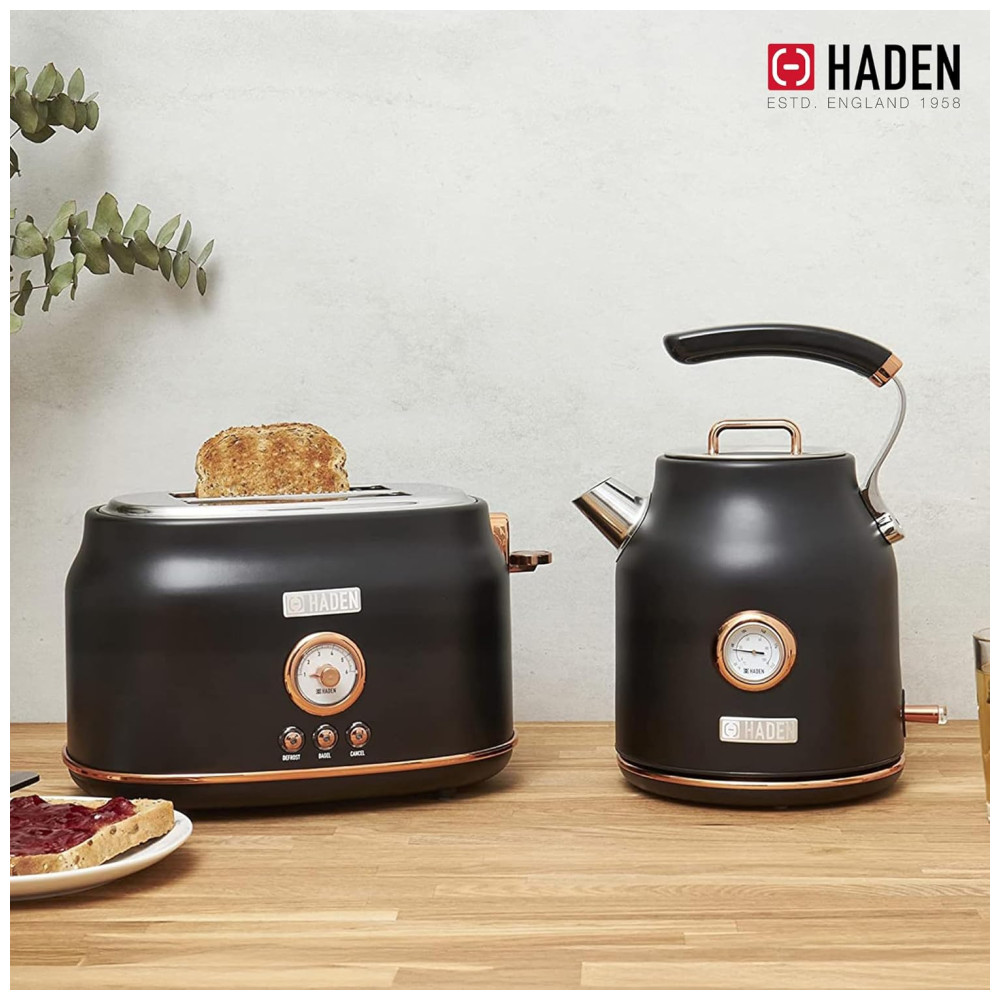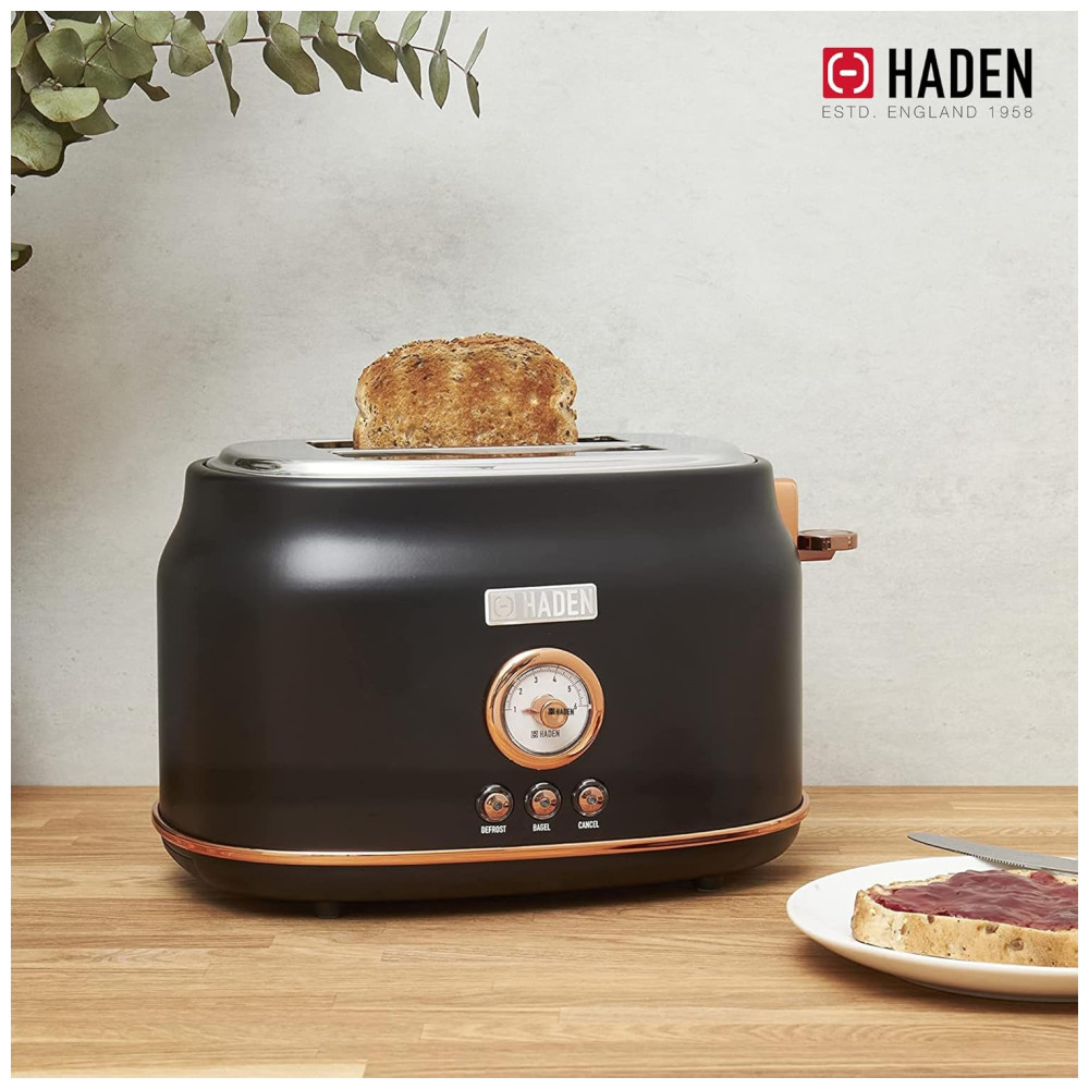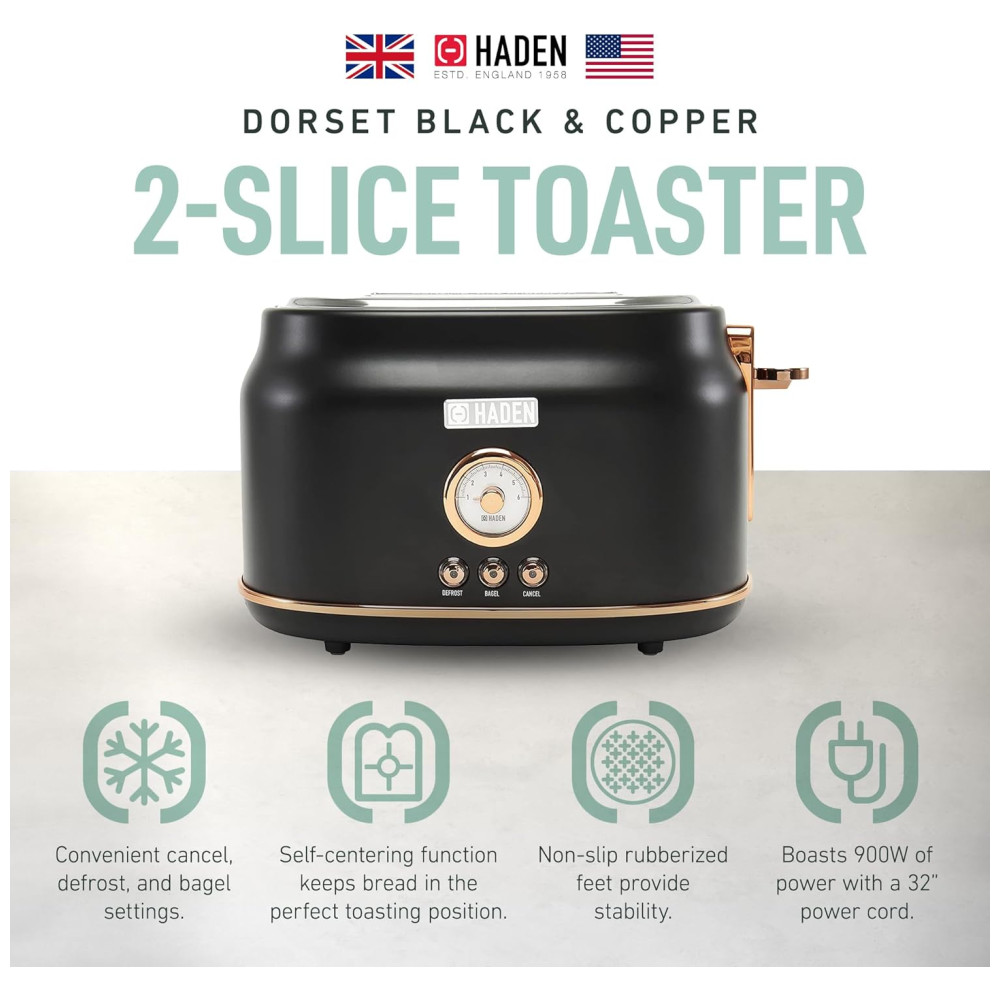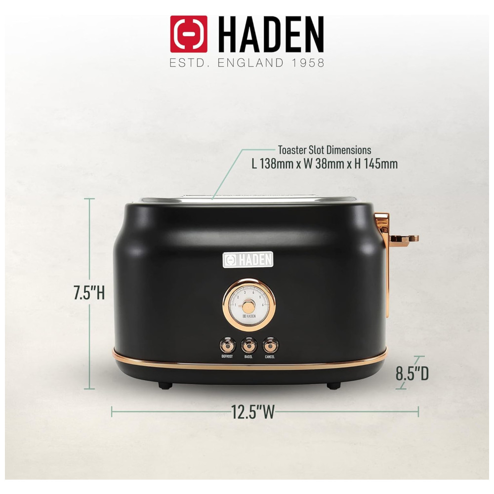 Torradeira Retro 2 Fatias com Fenda Larga Bandeja de Migalhas Removível e Controle de Tostagem 110V 1500W HADEN Preta e Cobre