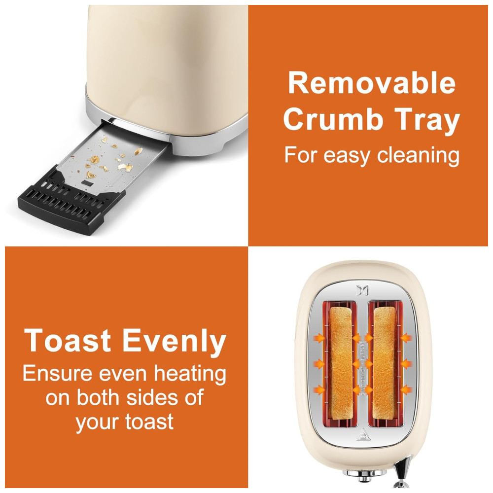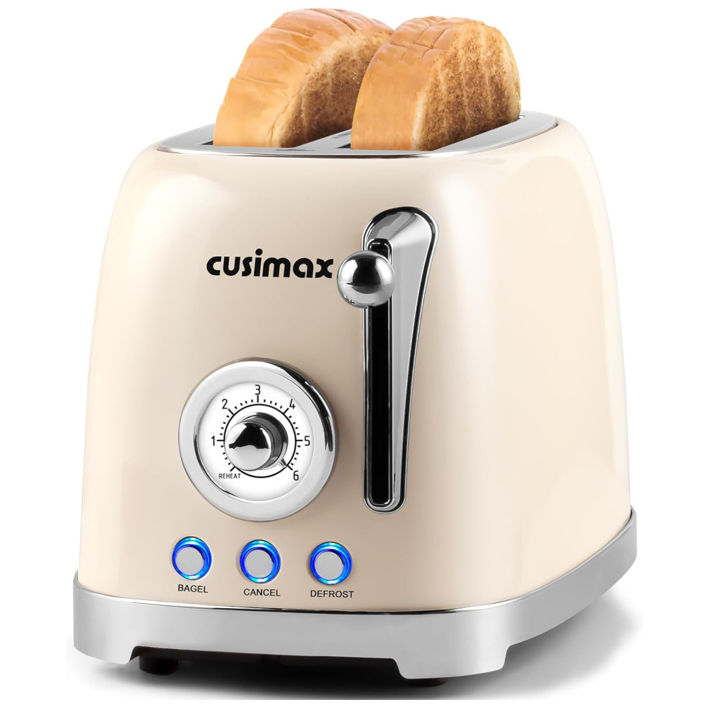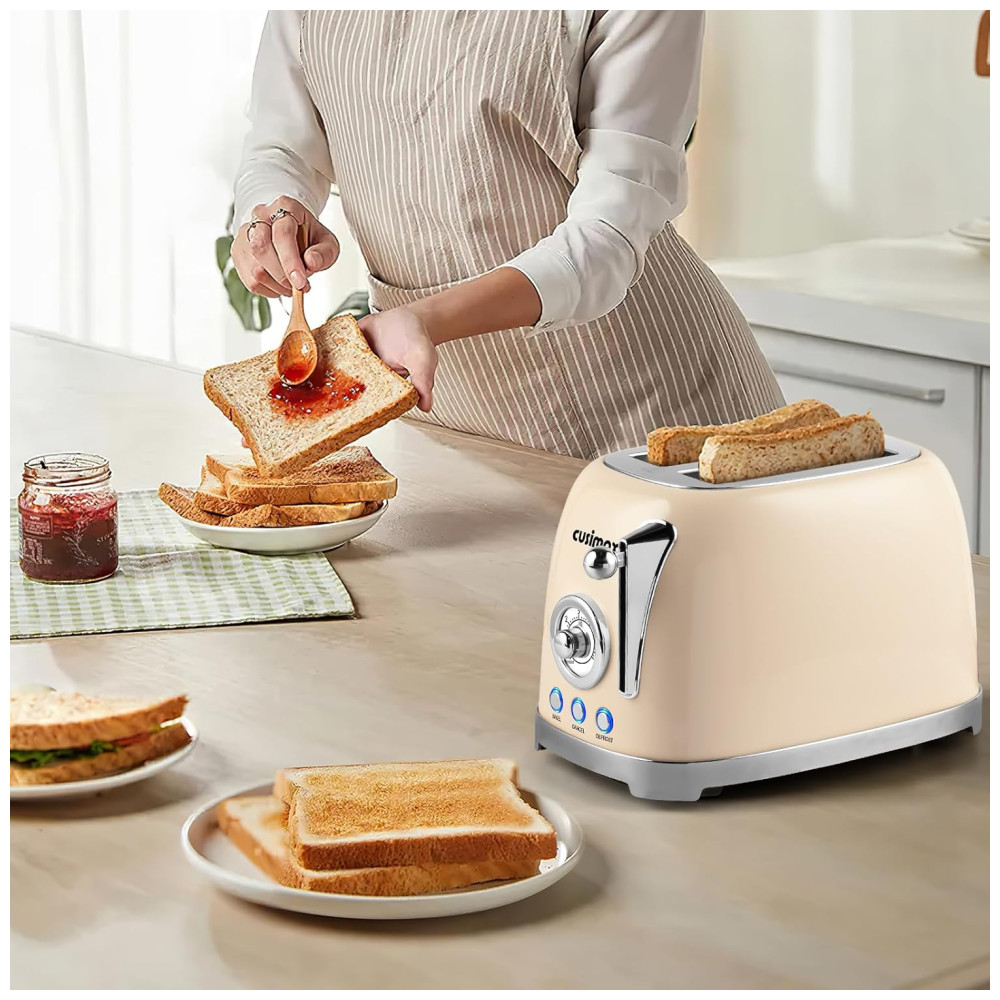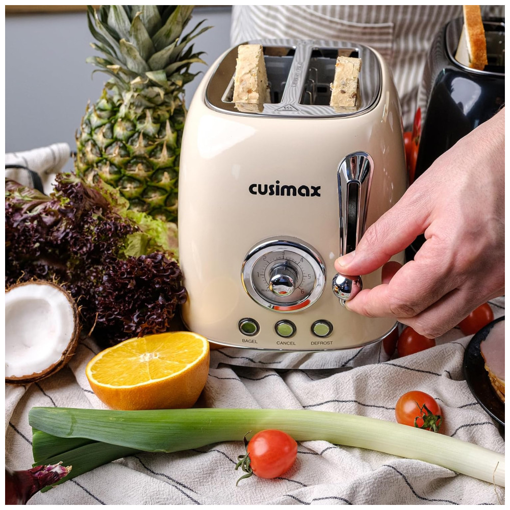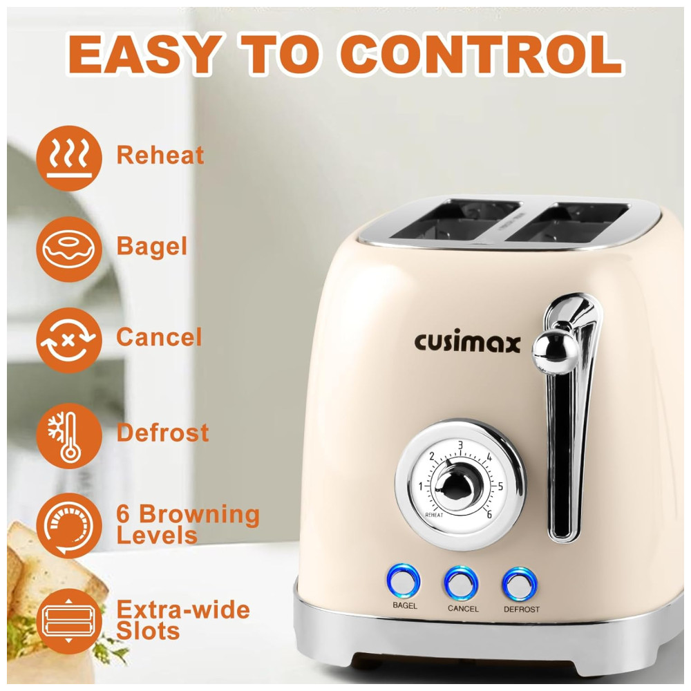 Torradeira Retro 2 Fatias com Fendas Extra Largas Bandeja de Migalhas Removível e 6 Níveis de Tostagem 110V 825W CUSIMAX Creme