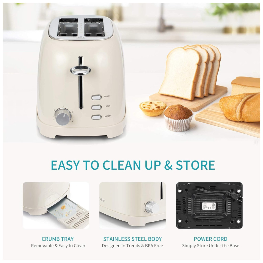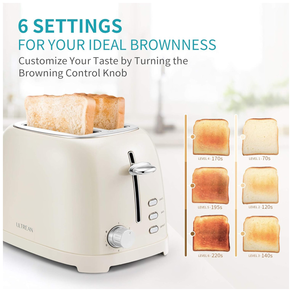 Torradeira Retro de 2 Fatias com 6 Níveis de Tostagem 825W 110v ULTREAN WT 330C Bege