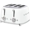 A torradeira Smeg TSF01RDUS é perfeita para quem busca funcionalidade e estilo retrô na cozinha. Com interface multifuncional, permite reaquecer, descongelar e dourar bagels. Possui 2 compartimentos grandes com suportes autonivelantes, garantindo o tostamento uniforme de fatias de pão de qualquer tamanho. A bandeja de migalhas de aço inoxidável polido é removível para facilitar a limpeza. Ao final do tempo selecionado, as fatias sobem automaticamente. Além disso, acompanha um feixe de bambu com imã para retirar o pão quente com segurança. Este bundle inclui a torradeira Smeg TSF01US 50s Retro Style de 2 fatias e um par de bambu. Com um corpo de aço revestido a pó, base cromada polida e alavanca de bola em aço inoxidável, a torradeira combina estilo e funcionalidade. Possui 2 slots extra largos, 6 níveis de douramento, 3 programas pré-definidos e pés antiderrapantes. A torradeira é alimentada por 950 W e possui um enrolador de cabo embutido para maior organização. Adquira já a sua e desfrute de um café da manhã perfeito!