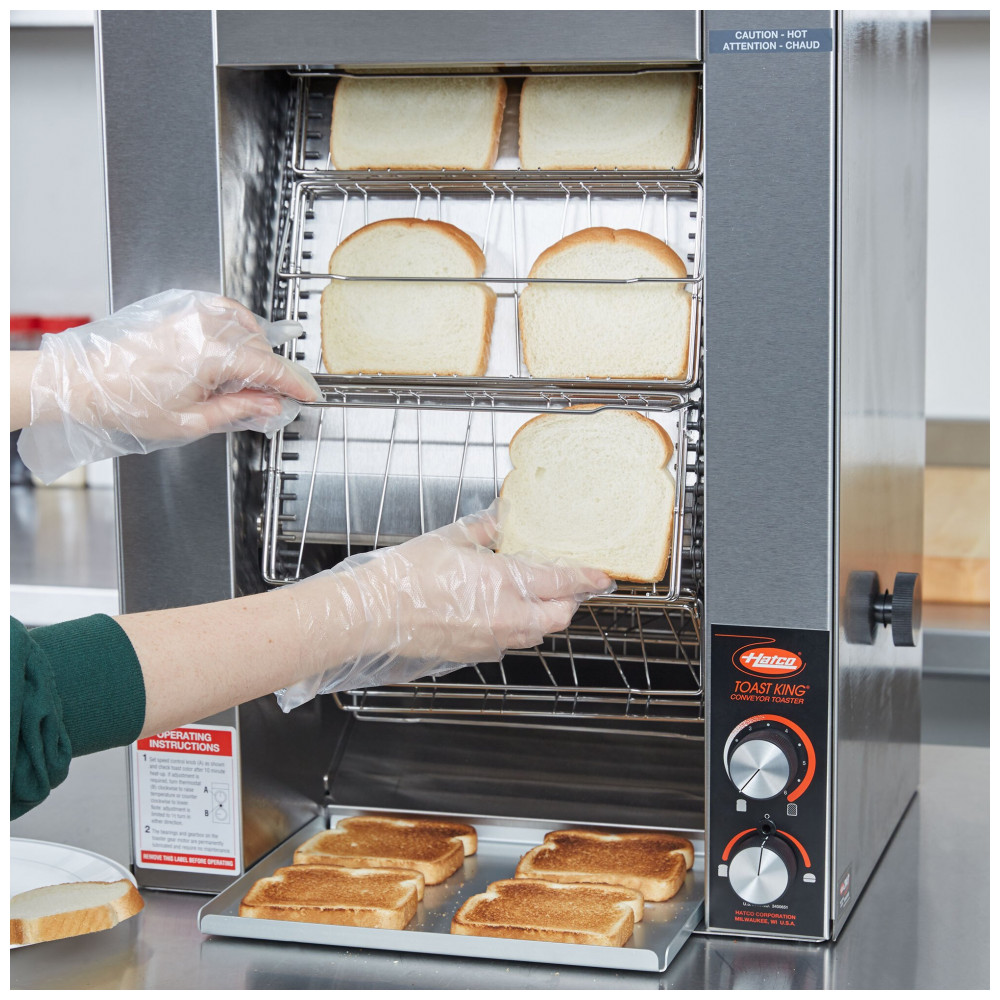 A Torradeira Vertical Hatco TK72 Toast King é a solução perfeita para obter torradas e pães sempre no ponto certo! Seu exclusivo sistema ColorGuard monitora e ajusta a velocidade do transportador para resultados consistentes. Ideal para torrar pães ou buns, alcançando incríveis 720 fatias por hora. Controle a cor das torradas com a velocidade ajustável do transportador. Potente, eficiente e confiável, com 208V de alimentação e 4038W de potência.