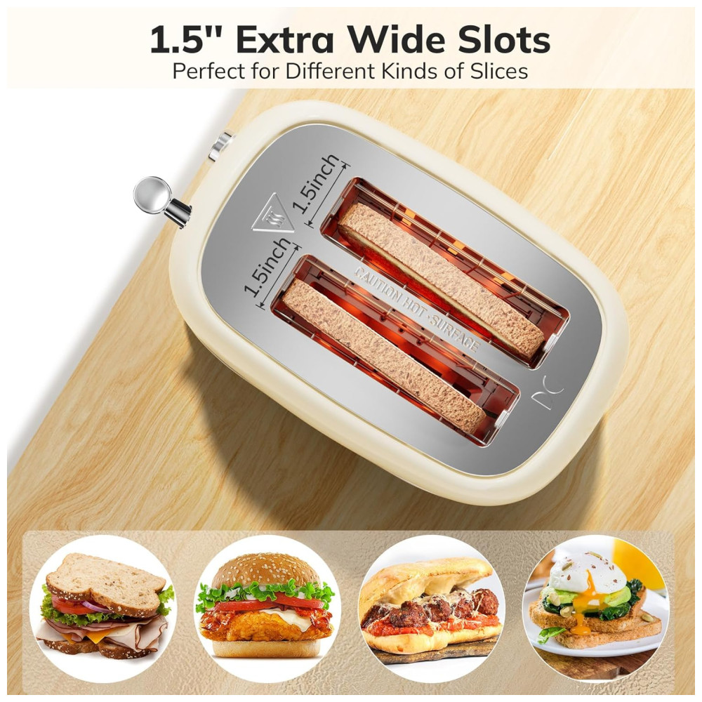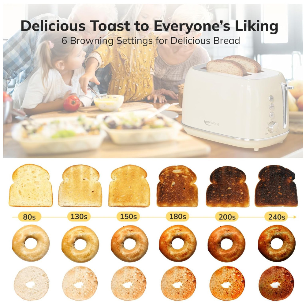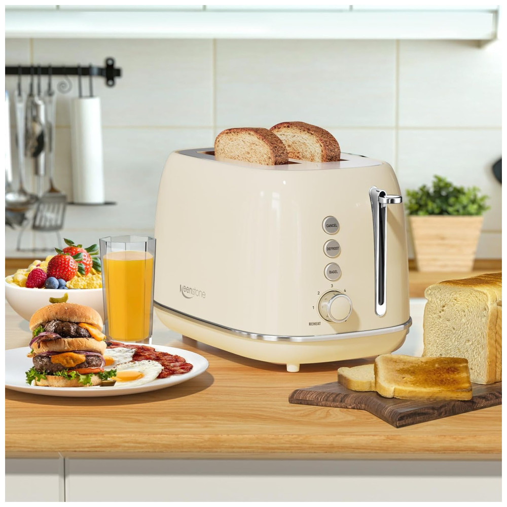 Torradeira Keenstone WT-330 Bege 2 Fatias Inox Retro 6 Níveis Extra Larga Função Bagel Descongelar Cancelar 825W 110V