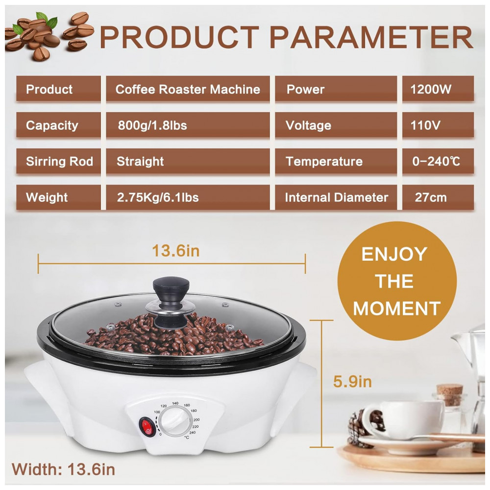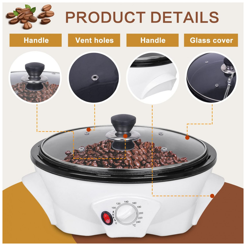 Grande capacidade: O torrador de grãos de café está equipado com uma bandeja para assar, que pode torrar 300 500g de grãos de café por vez. uso doméstico.
