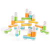 A Guidecraft Contemporary Kitchen Helper Toddler Tower Pink é uma torre de aprendizagem dobrável em madeira, desenvolvida para permitir que crianças de 18 meses a 5 anos alcancem com segurança a altura da bancada da cozinha para participar de atividades do dia a dia. A estrutura combina painéis laterais com ripas, base com pés estáveis e plataforma interna ajustável em dois níveis, formando um espaço semi‑fechado para a criança subir e permanecer em pé.