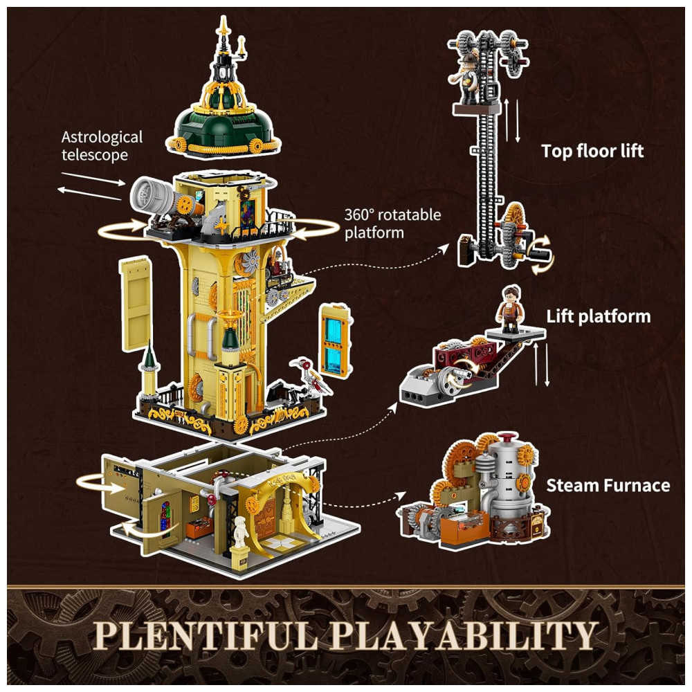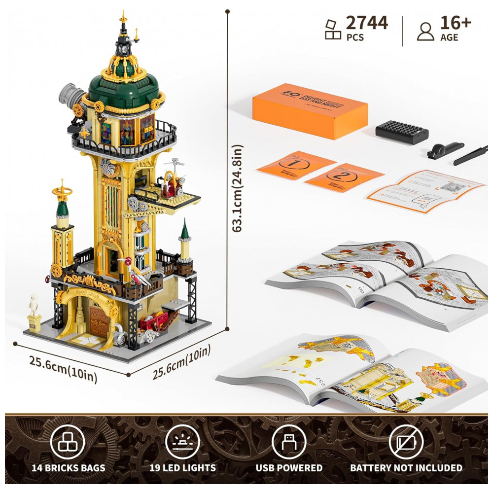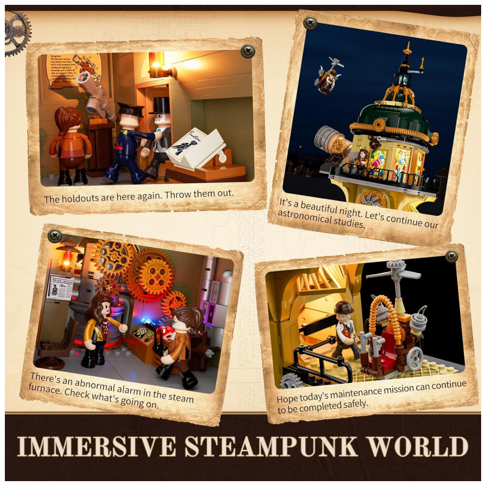 FUNWHOLE Torre Observatório Steampunk com Iluminação e 2744 Peças – Conjunto Exclusivo para Adultos