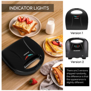 A Tostadeira Aigostar é a solução ideal para preparar deliciosos sanduíches de café da manhã. Com apenas um simples aperto, ela aquece os ingredientes, derrete o queijo e proporciona uma crosta crocante por fora. Além de fatias de pão, é possível tostar muffins ingleses, bagels e quesadillas. Esqueça a frigideira e faça sanduíches quentes de forma fácil em apenas 5 minutos ou menos. As luzes indicadoras de pronto avisam quando a tostadeira está aquecida e pronta para uso. As chapas antiaderentes garantem a liberação fácil dos alimentos e facilitam a limpeza, sem a necessidade de óleo ou manteiga, promovendo uma alimentação mais saudável. A alça com toque frio garante segurança durante o uso. Compacta e portátil, pode ser armazenada na posição vertical, sendo ideal para dormitórios, trailers e cozinhas de todos os tamanhos. Com motor de 750 watts e termostato automático, é ideal para grelhar ovos, peitos de frango, bifes, paninis, focaccias e muito mais. Prepare 2 sanduíches ao mesmo tempo, escolhendo o tamanho do pão adequado.