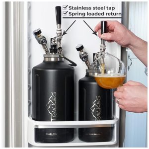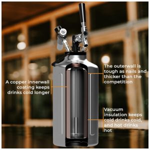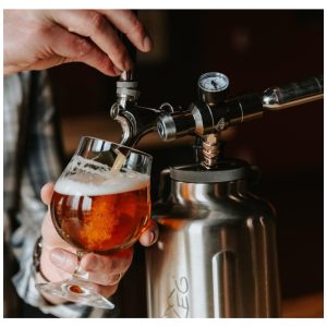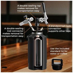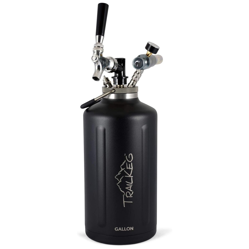EXTREMAMENTE VERSÁTIL há muitas maneiras de usar a garrafa growler de aço inoxidável TrailKeg de cervejas caseiras, café nitro, kombucha a coquetéis. Basta preenchê lo, conectar a torneira e o regulador e despejar