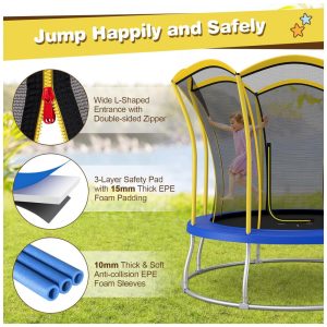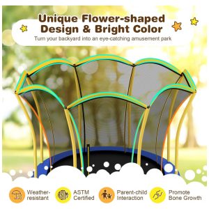 Trampolim ao ar livre Goplus 8FT 10FT trampolim aprovado pela ASTM com formato de flor exclusivo rede de gabinete almofada de segurança estrutura de aço galvanizado trampolim recreativo para crianças e adultos amarelo 8 pés