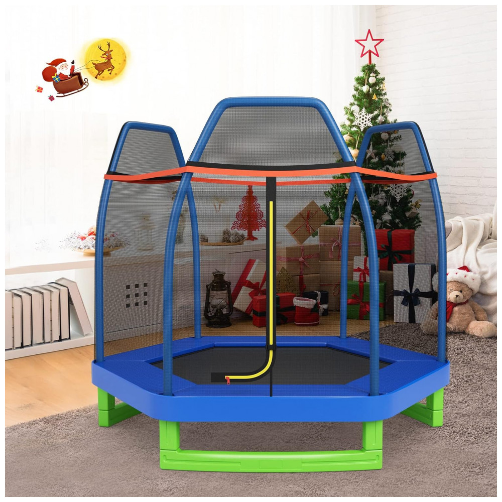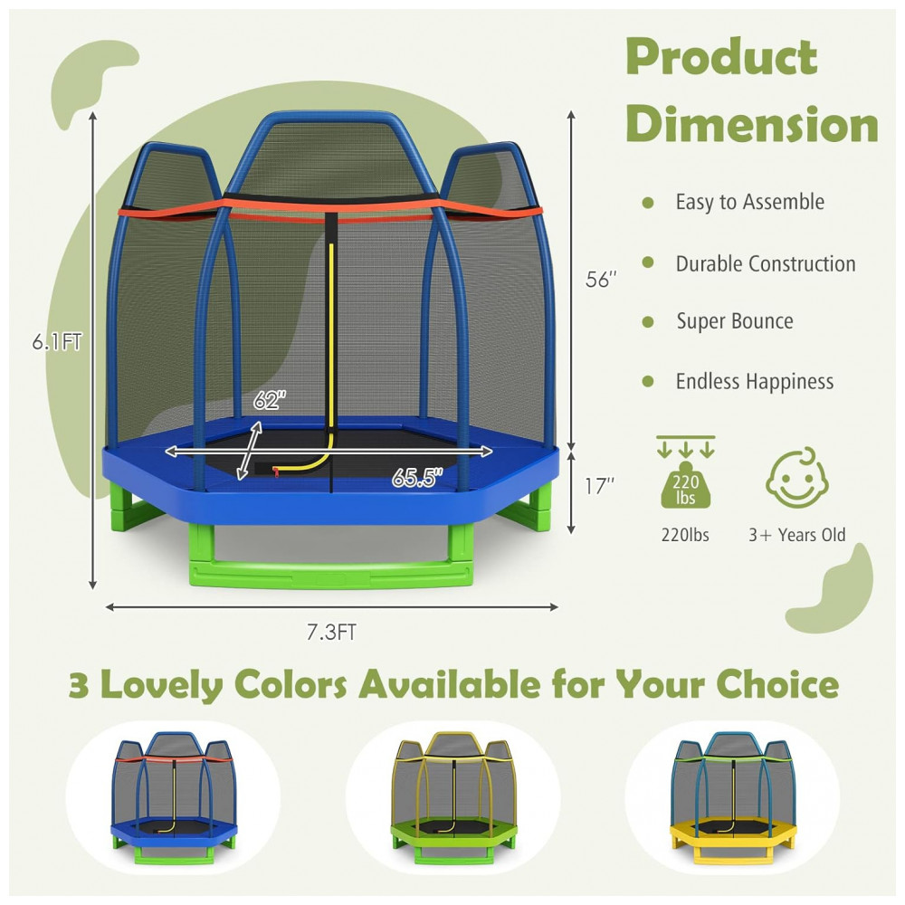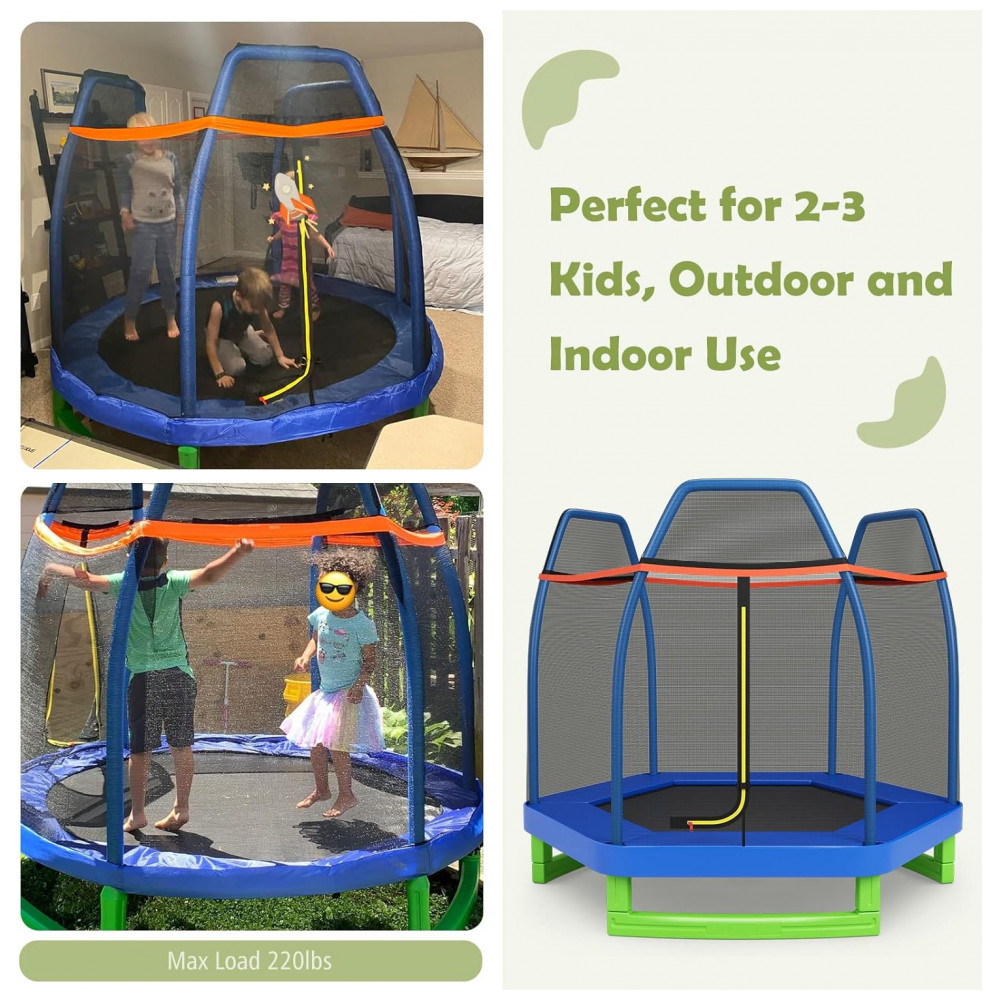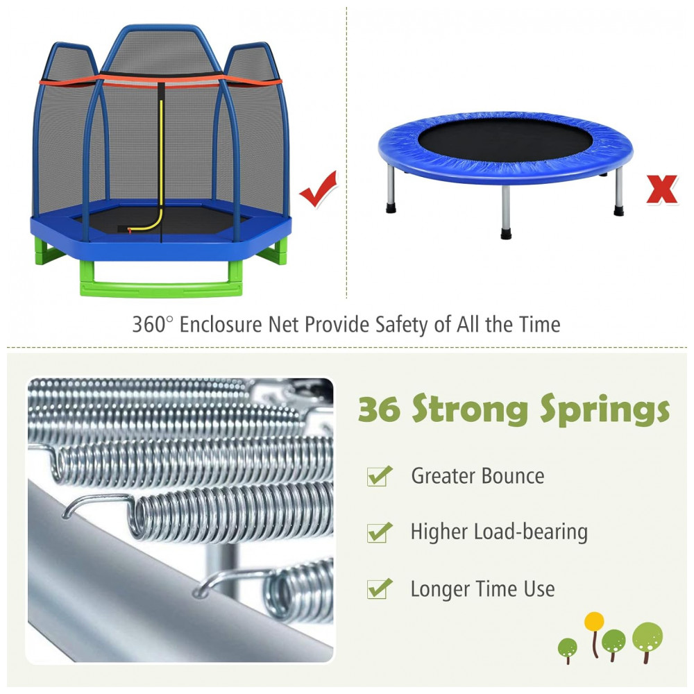 Trampolim DIÁRIO para crianças trampolins recreativos de 7 pés trampolim com compartimento de segurança de rede mini trampolim interno externo trampolim infantil para meninos meninas de 3 anos azul verde