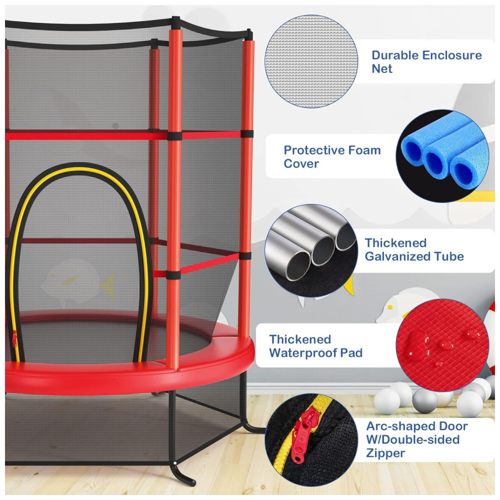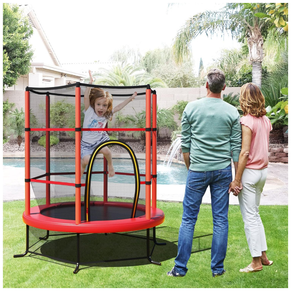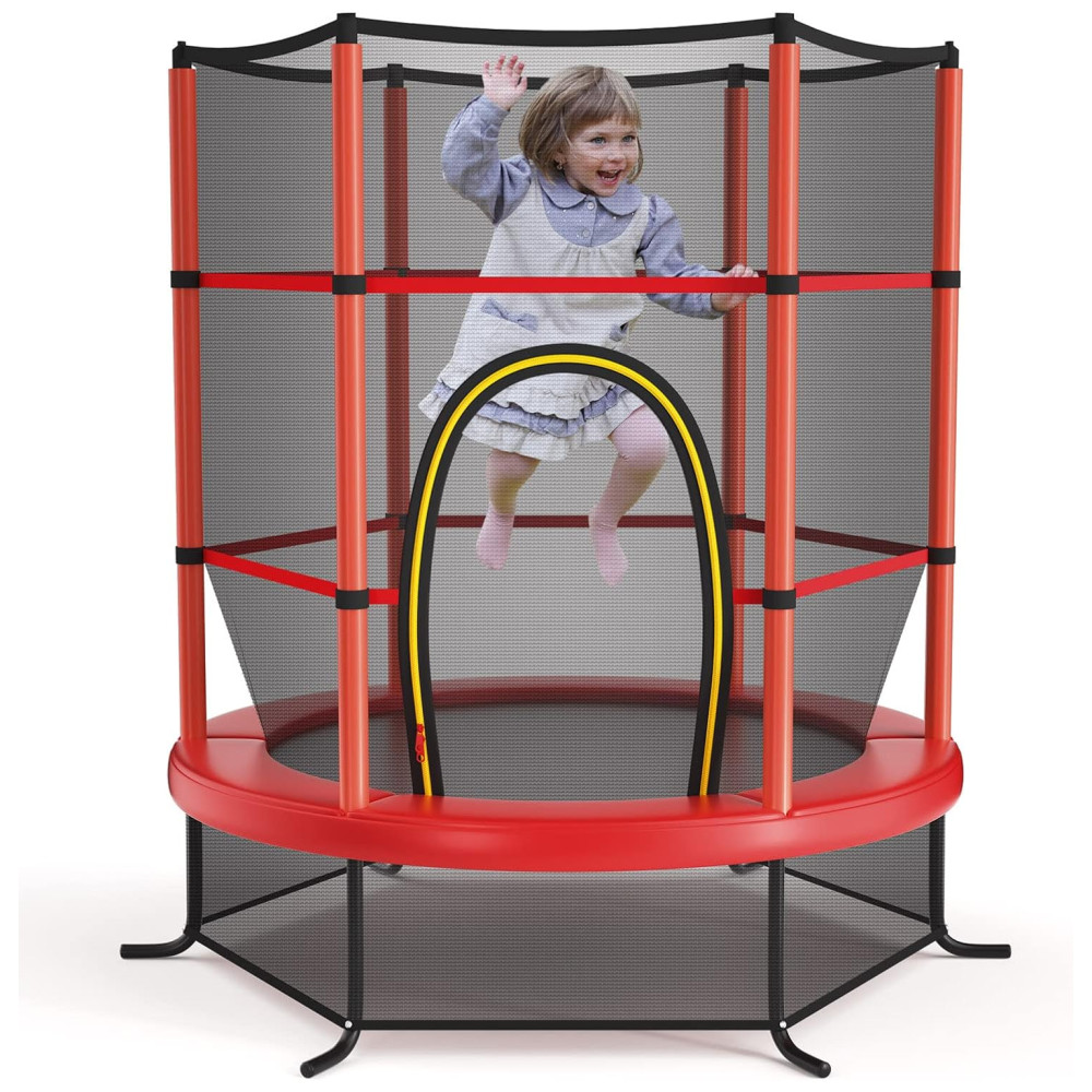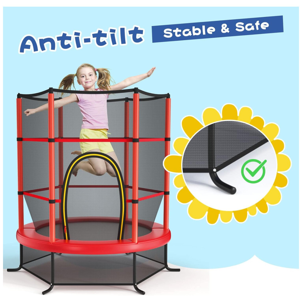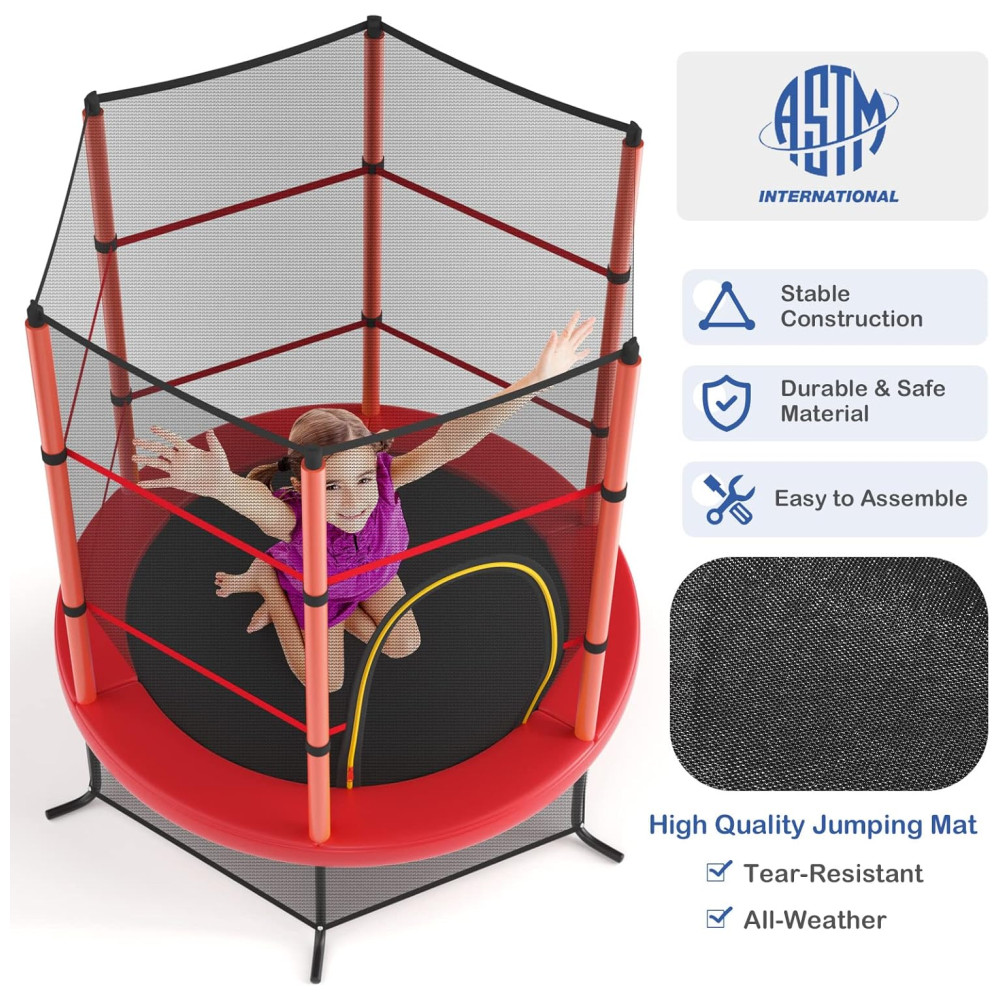 Trampolim Giantex para crianças trampolim infantil aprovado pela ASTM 55 Mini com rede de segurança design sem lacunas fácil de montar trampolim pequeno para crianças pequenas ao ar livre de 46 pés vermelho