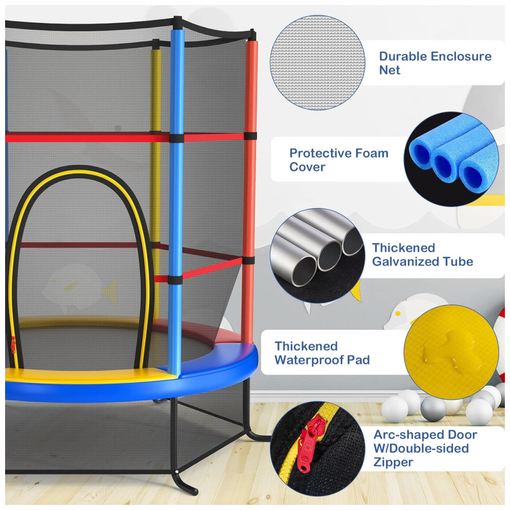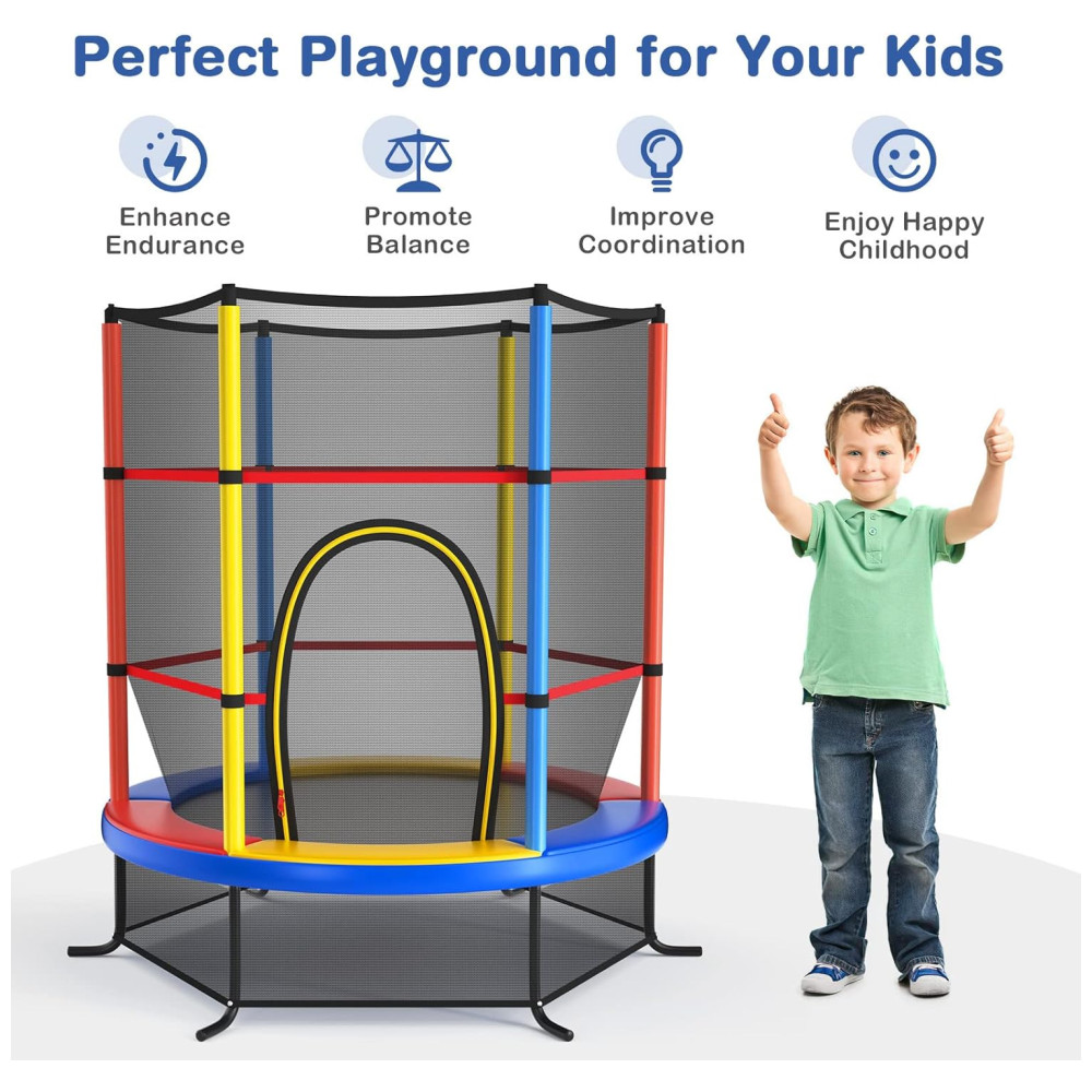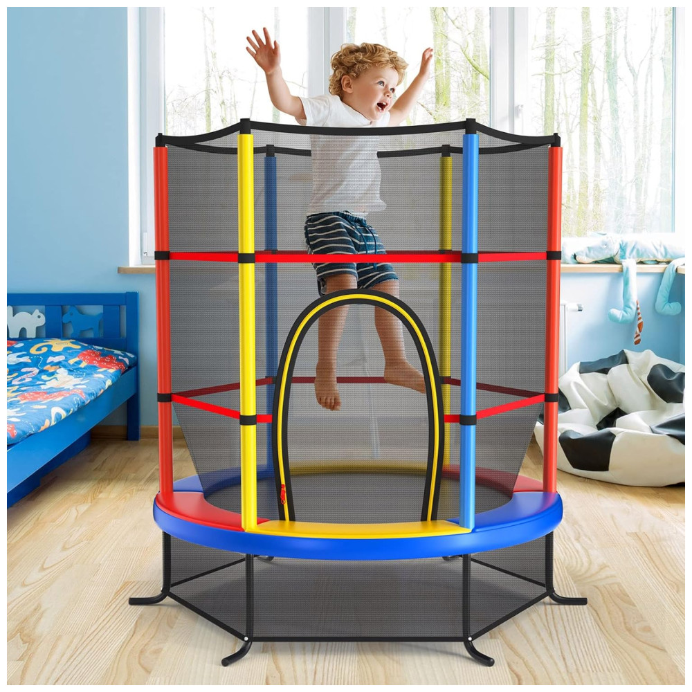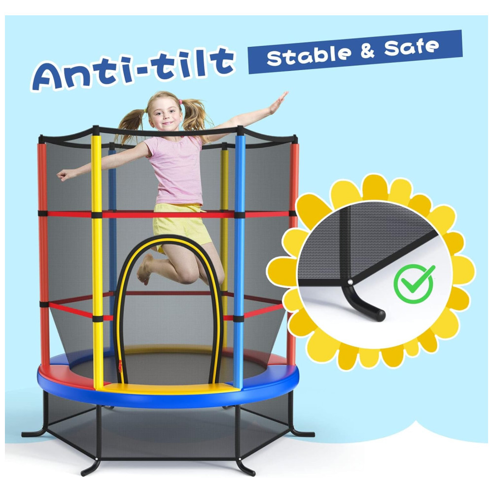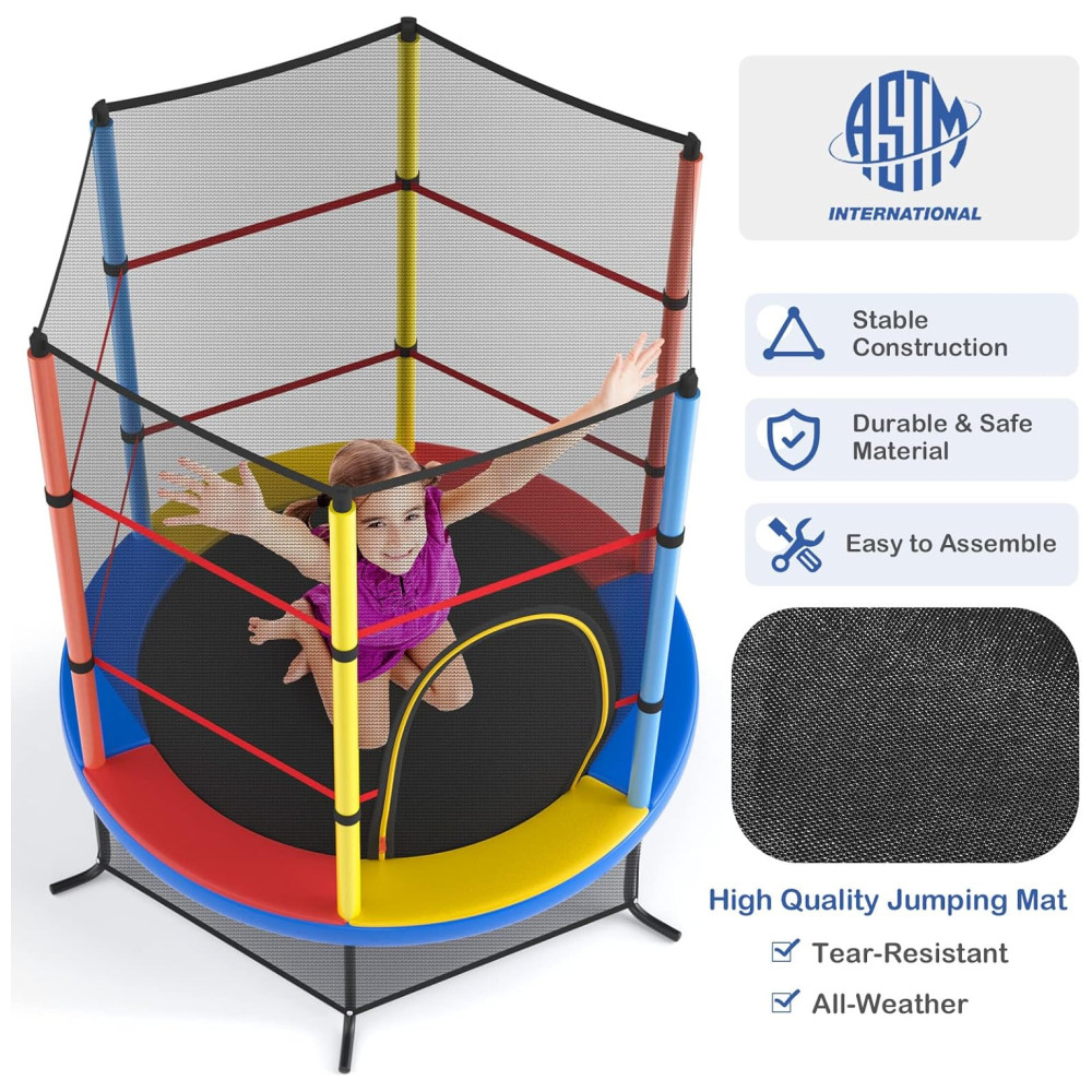 Trampolim Giantex para crianças trampolim infantil aprovado pela ASTM 55 Mini com rede de segurança design sem lacunas fácil de montar trampolim pequeno para crianças pequenas ao ar livre de 46 pés multicolorido