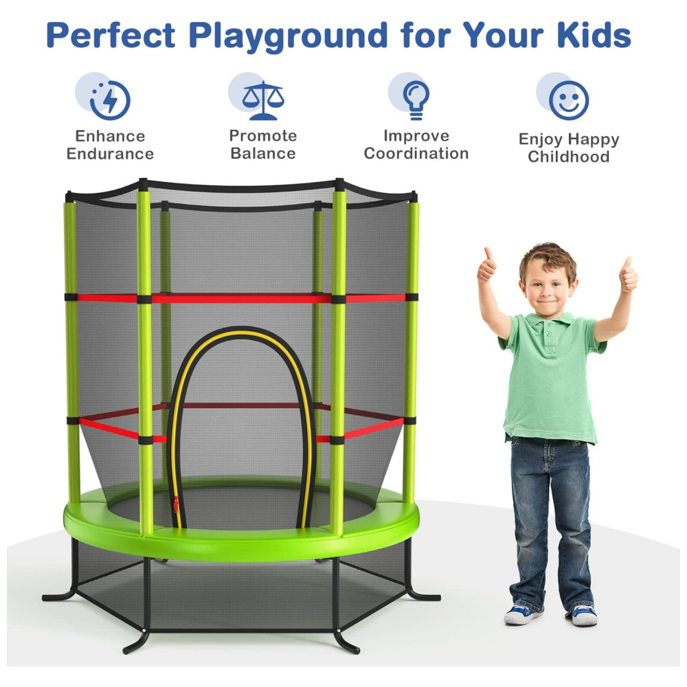 Trampolim Giantex para crianças trampolim infantil aprovado pela ASTM 55 Mini com rede de segurança design sem lacunas fácil de montar trampolim pequeno para crianças pequenas ao ar livre de 46 pés verde