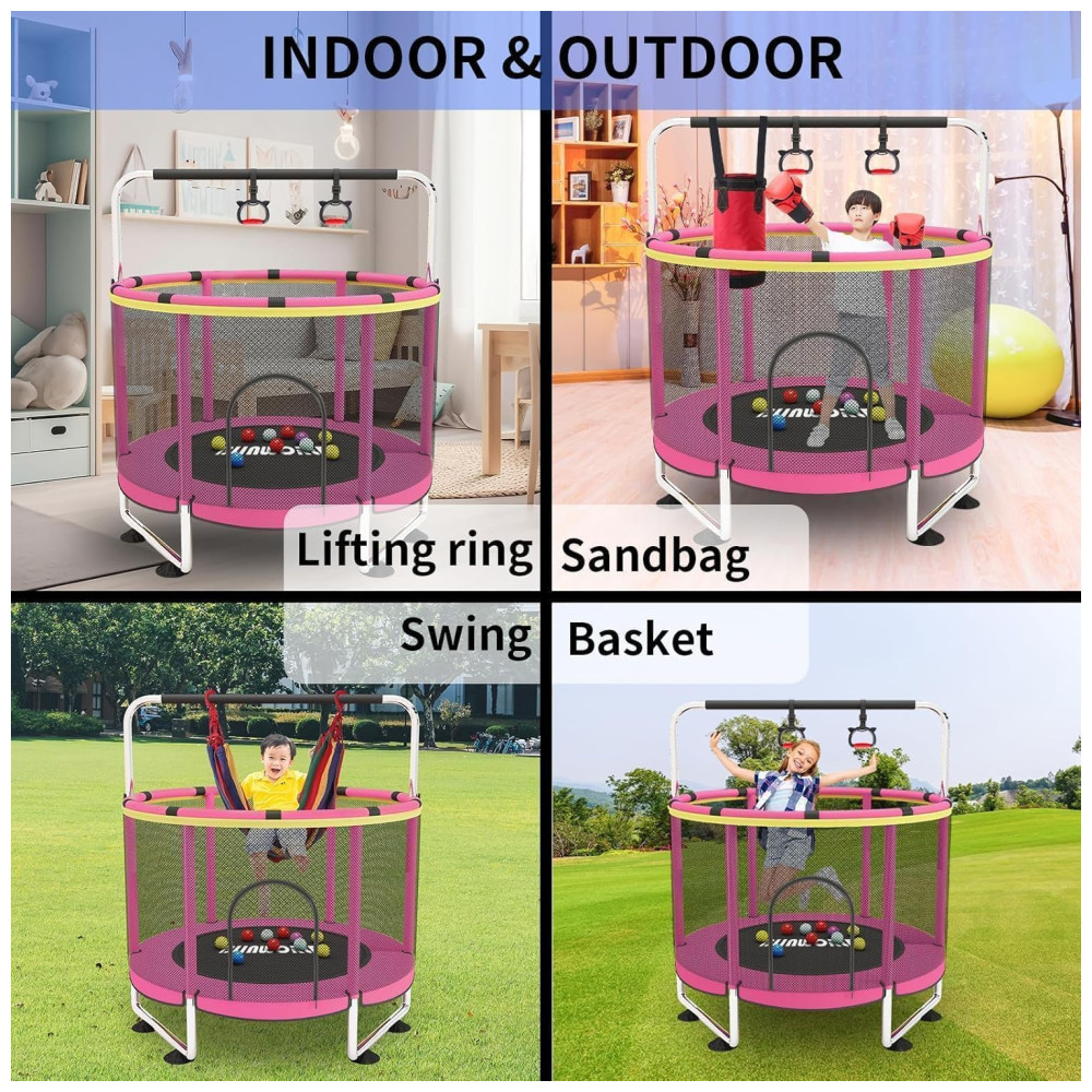 A mola de tambor de cintura grossa é personalizada e duradoura sem deformação, proporcionando segurança para as crianças em ambientes internos e externos. O trampolim é fácil de montar e inclui acessórios gratuitos, como argolas, balanços, sacos de areia, bolas oceânicas e cestos, para proporcionar mais diversão para seus filhos enquanto saltam.