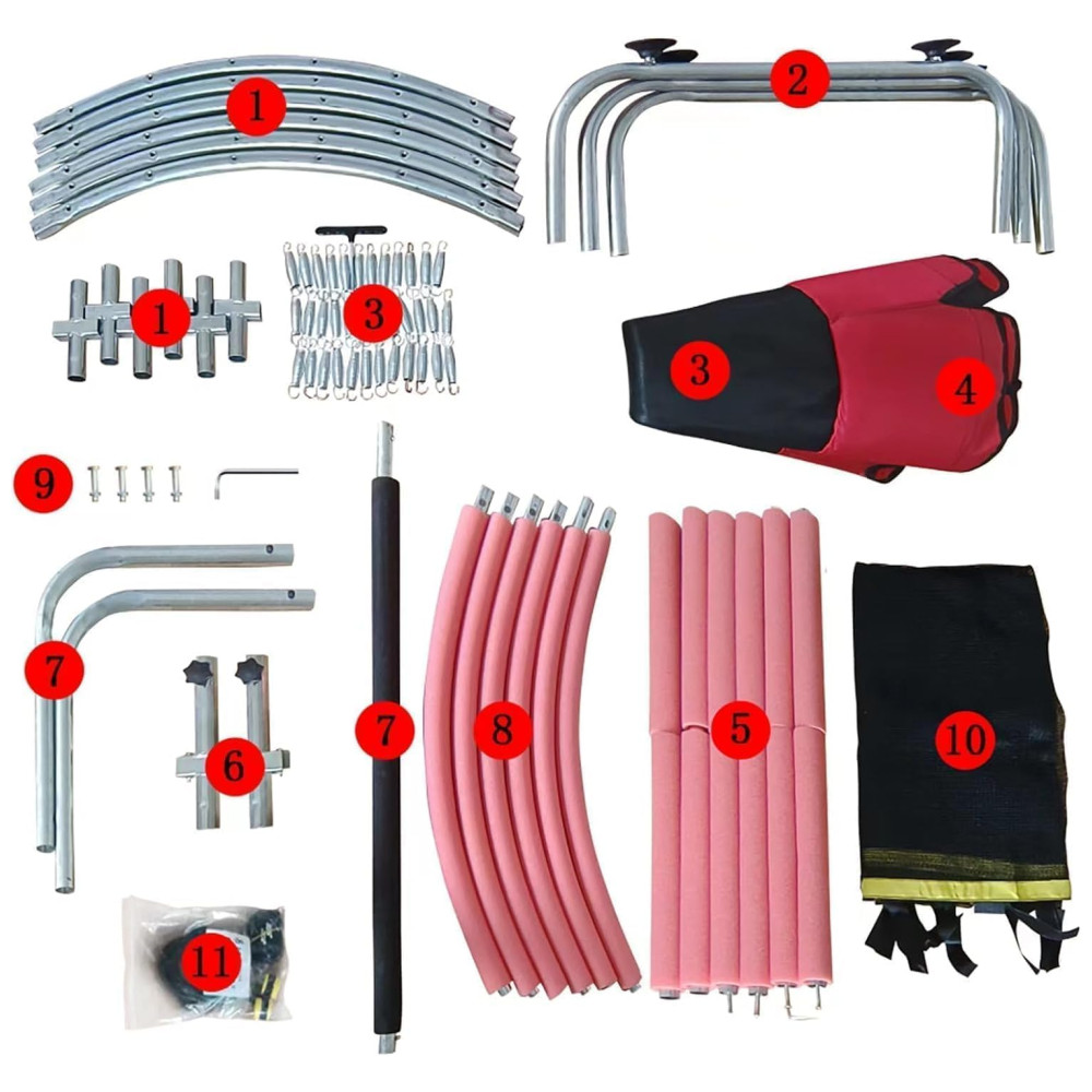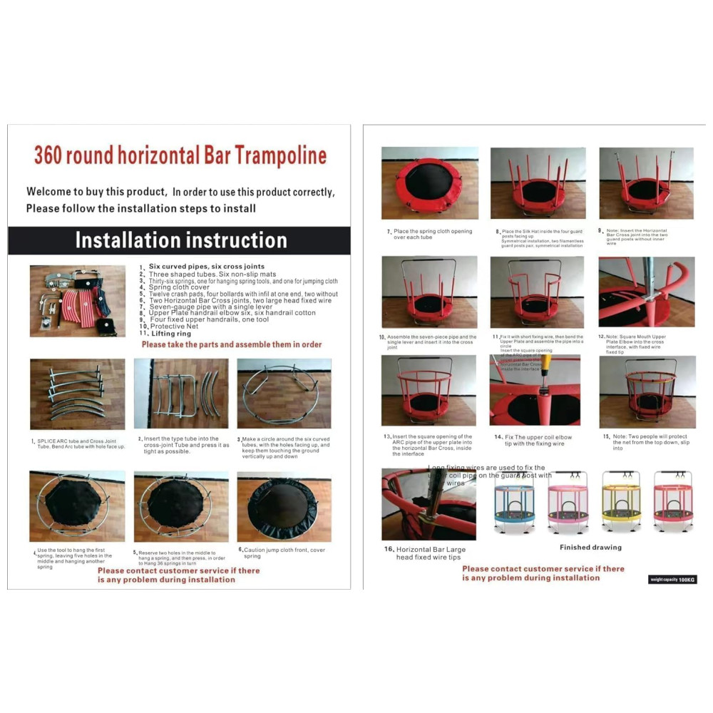 Cada conjunto vem com duas alças de montagem adicionais e dois conjuntos de luvas adequadas para duas pessoas montarem juntas, além de duas molas adicionais, duas tubos de espuma, instruções e bolas oceânicas, embalados individualmente para proteção perfeita contra danos. Escolha este trampolim para presentear seu filho e incentivá lo a se exercitar e se divertir ao mesmo tempo.