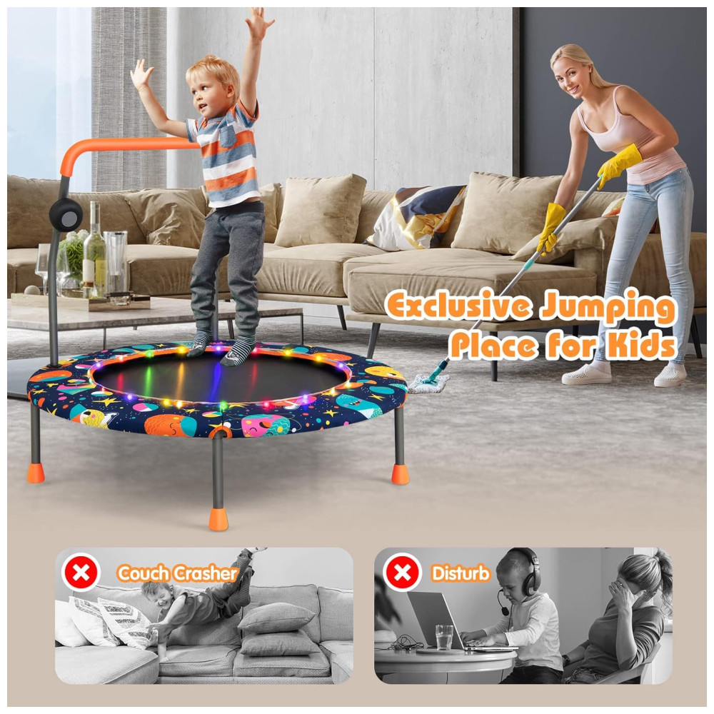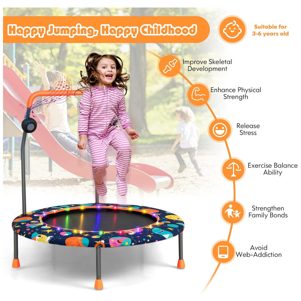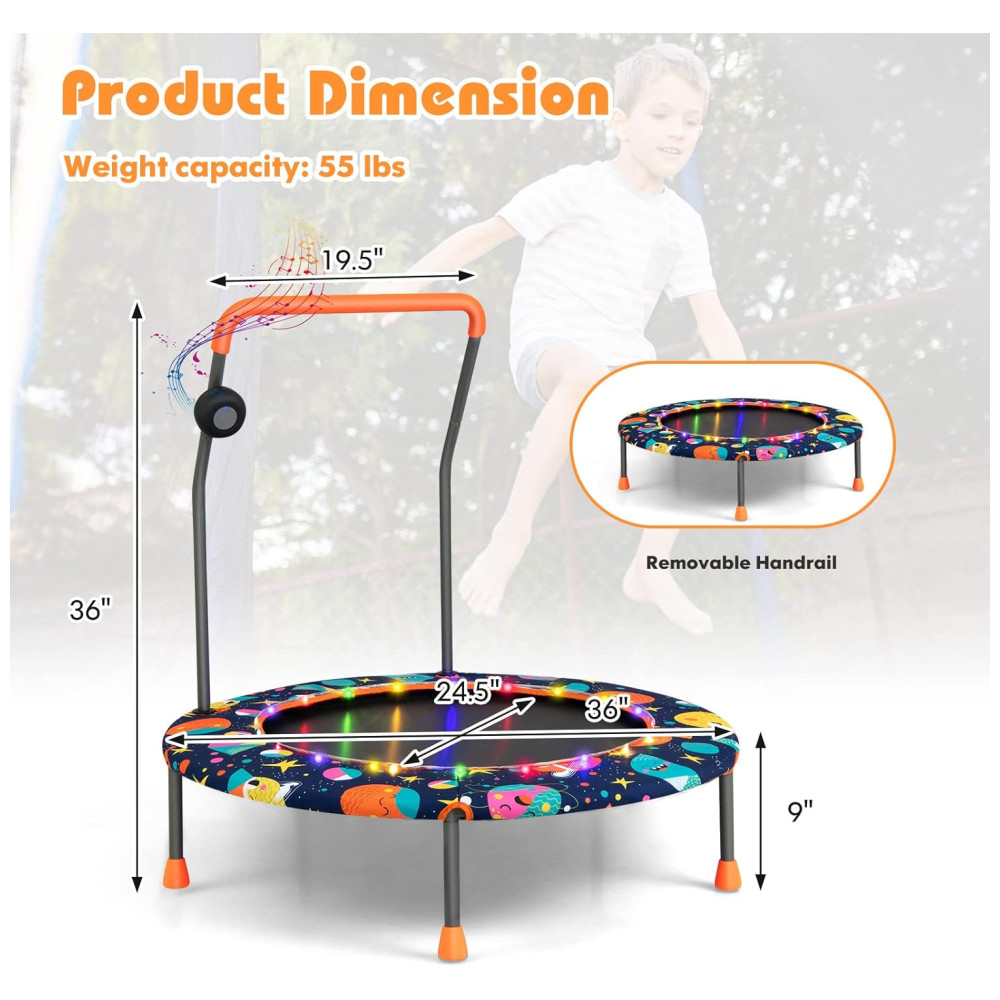 Trampolim Infantil Goplus 36 com Luzes LED Bluetooth e Alça Removível Capa Inclusa