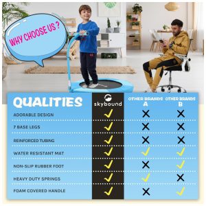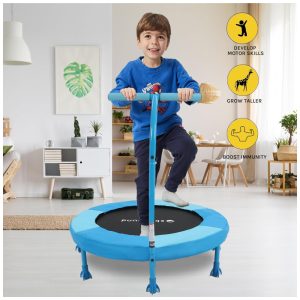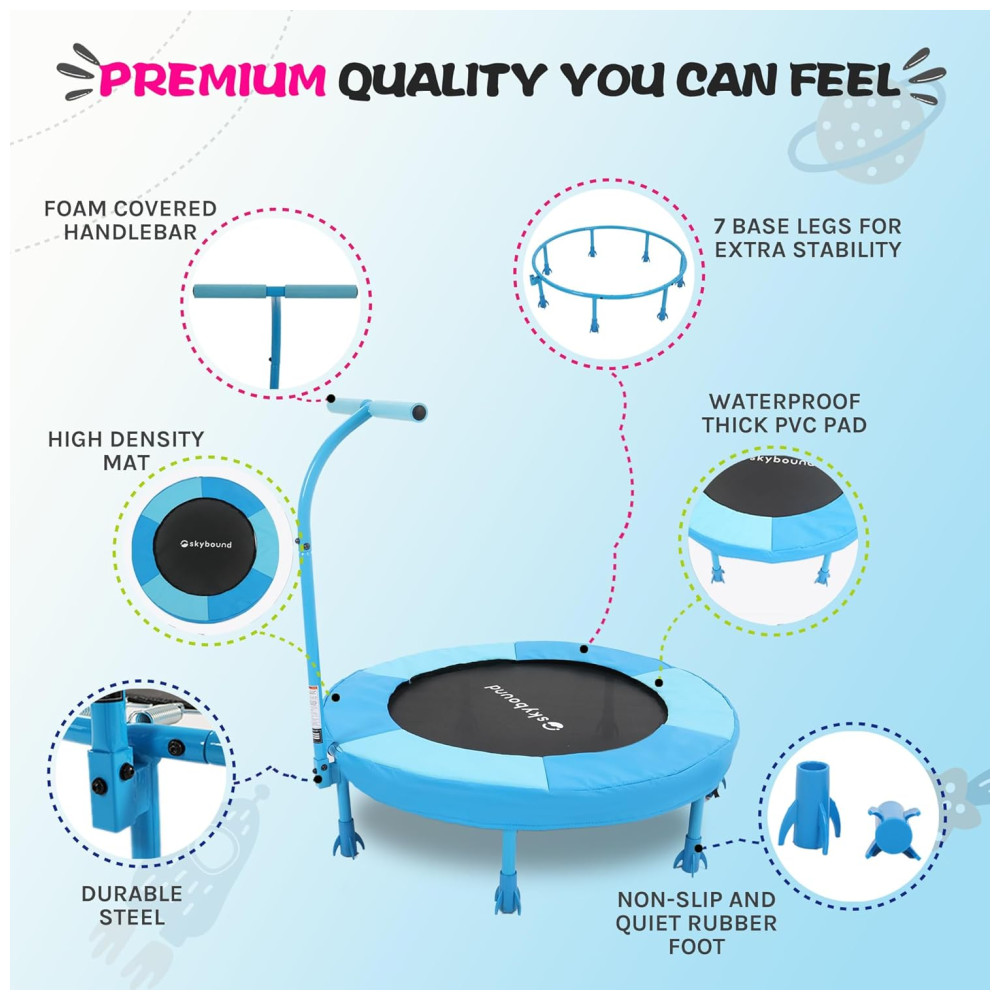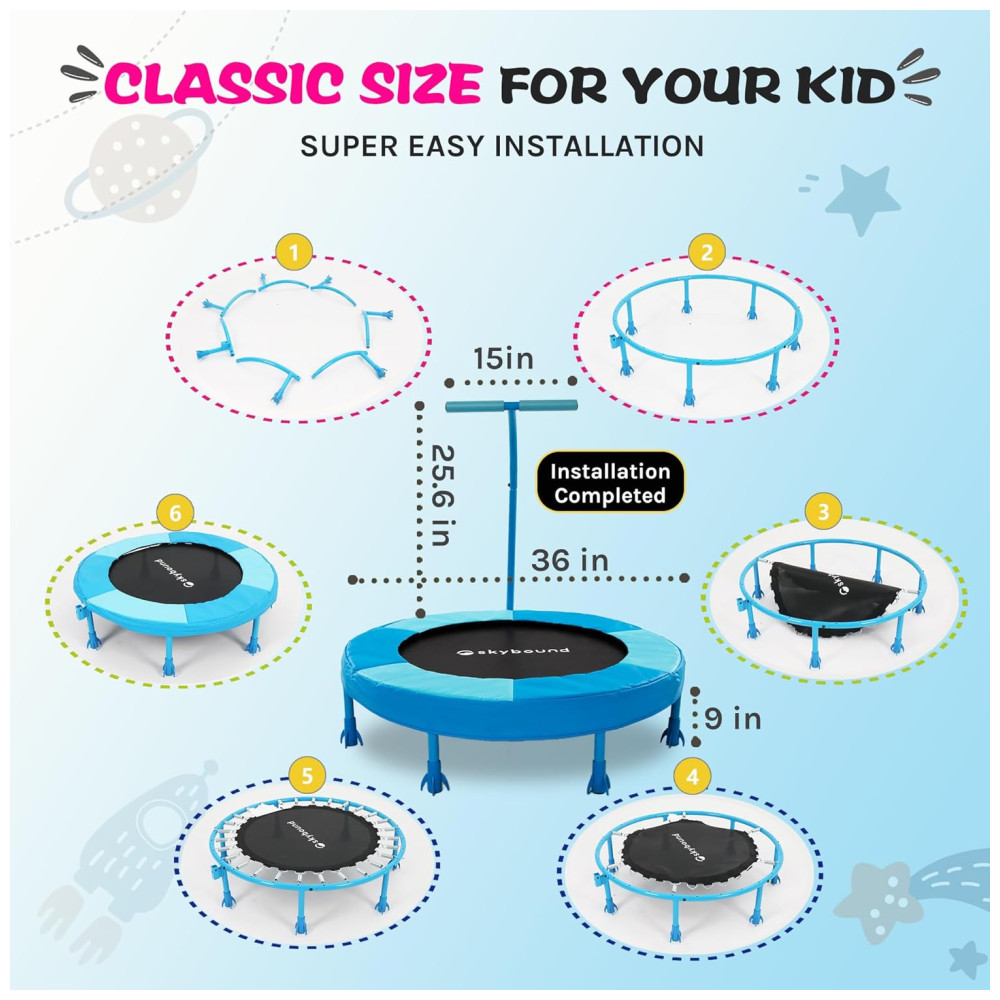 Trampolim Infantil SkyBound Kids de 36 polegadas com alça para uso interno Ideal para diversão e atividade física das crianças.