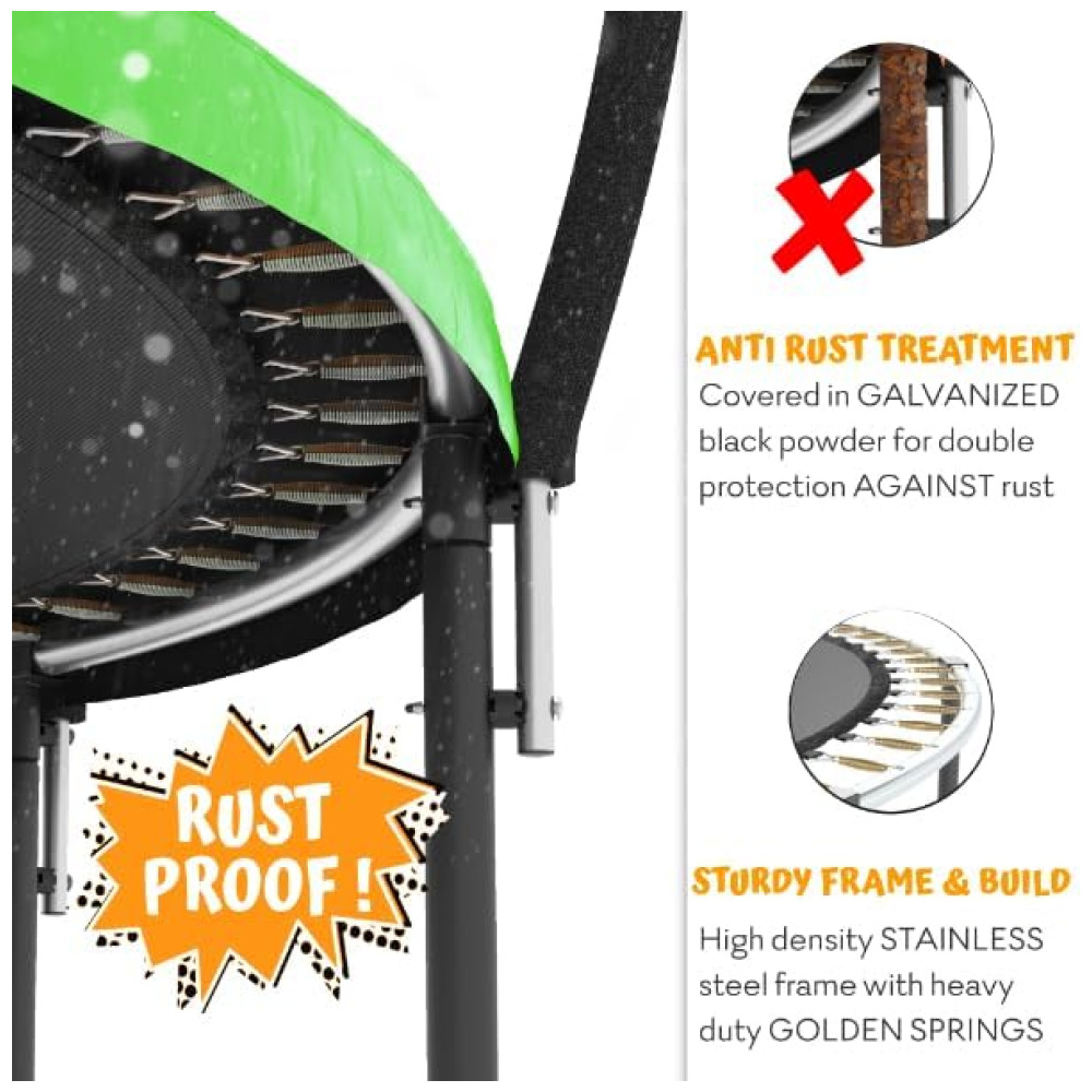 Trampolim JUMPZYLLA 24m 3m 36m 43m 46m 49m com Rede de Proteção Escada e Revestimento Antiferrugem Aprovado pela ASTM para Crianças.