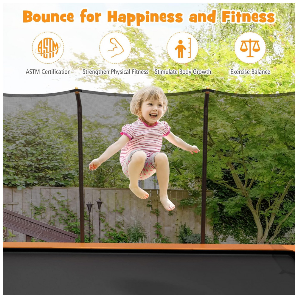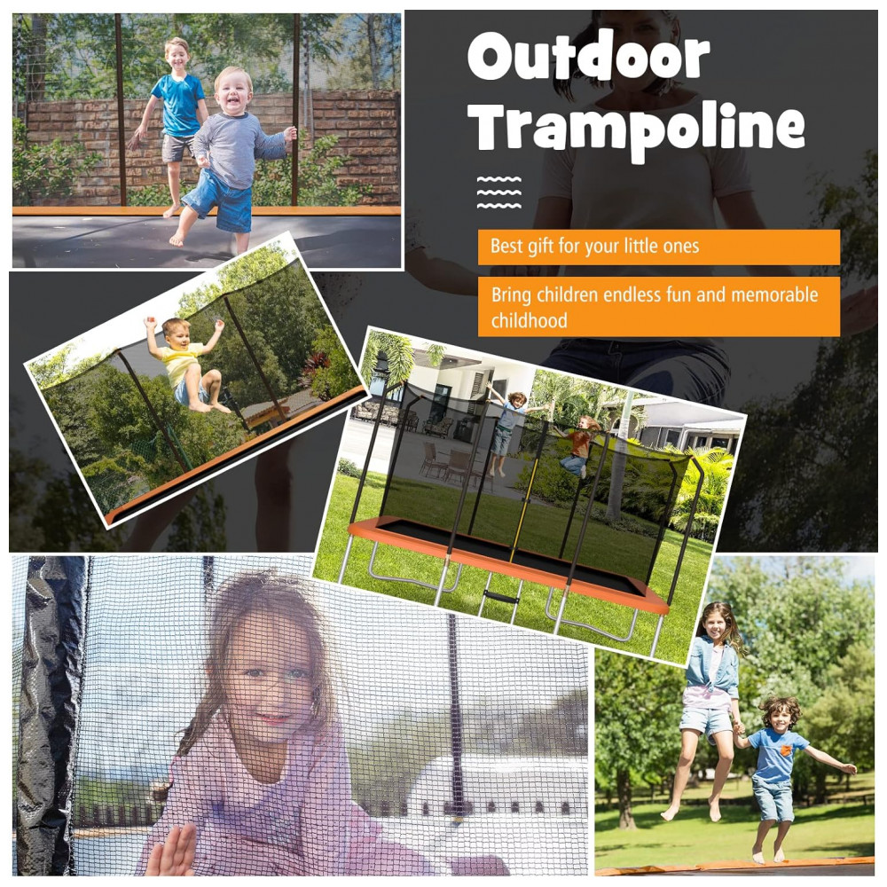 Trampolim retangular Goplus 8FT x 14FT trampolins recreativos com rolamento de 440LBS com escada antiderrapante de rede de gabinete almofada à prova dágua trampolim externo de salto aprovado pela ASTM para crianças e adultos laranja