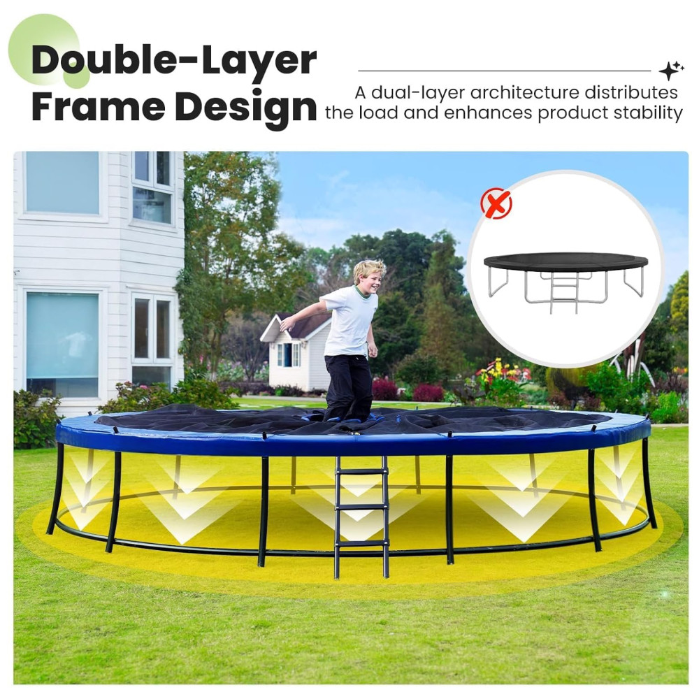 Design de Estrutura Dupla: Experimente um novo nível de diversão no seu quintal com o trampolim Zupapa, que apresenta um design único de estrutura dupla, aprimorando a estabilidade como nunca antes. A estrutura menor na parte superior e maior na parte inferior redistribui a pressão, aumentando a durabilidade e abaixando o centro de gravidade, tornando-o extremamente estável e evitando tombamentos. Perfeito para uma diversão segura e duradoura!