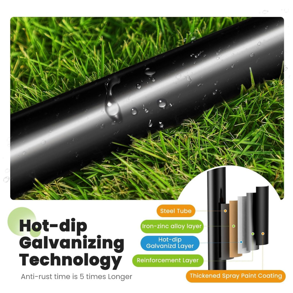 Fixação Poderosa: Estacas Espirais: Aproveite a diversão sem interrupções com o trampolim, projetado para resistir aos ventos mais fortes. Equipado com estacas espirais extra-longas de 34 cm, ao contrário das tradicionais estacas em formato de U, o trampolim permanece firmemente ancorado, garantindo que fique ereto e sem danos, mesmo em condições climáticas adversas. Perfeito para espaços compactos ao ar livre!
