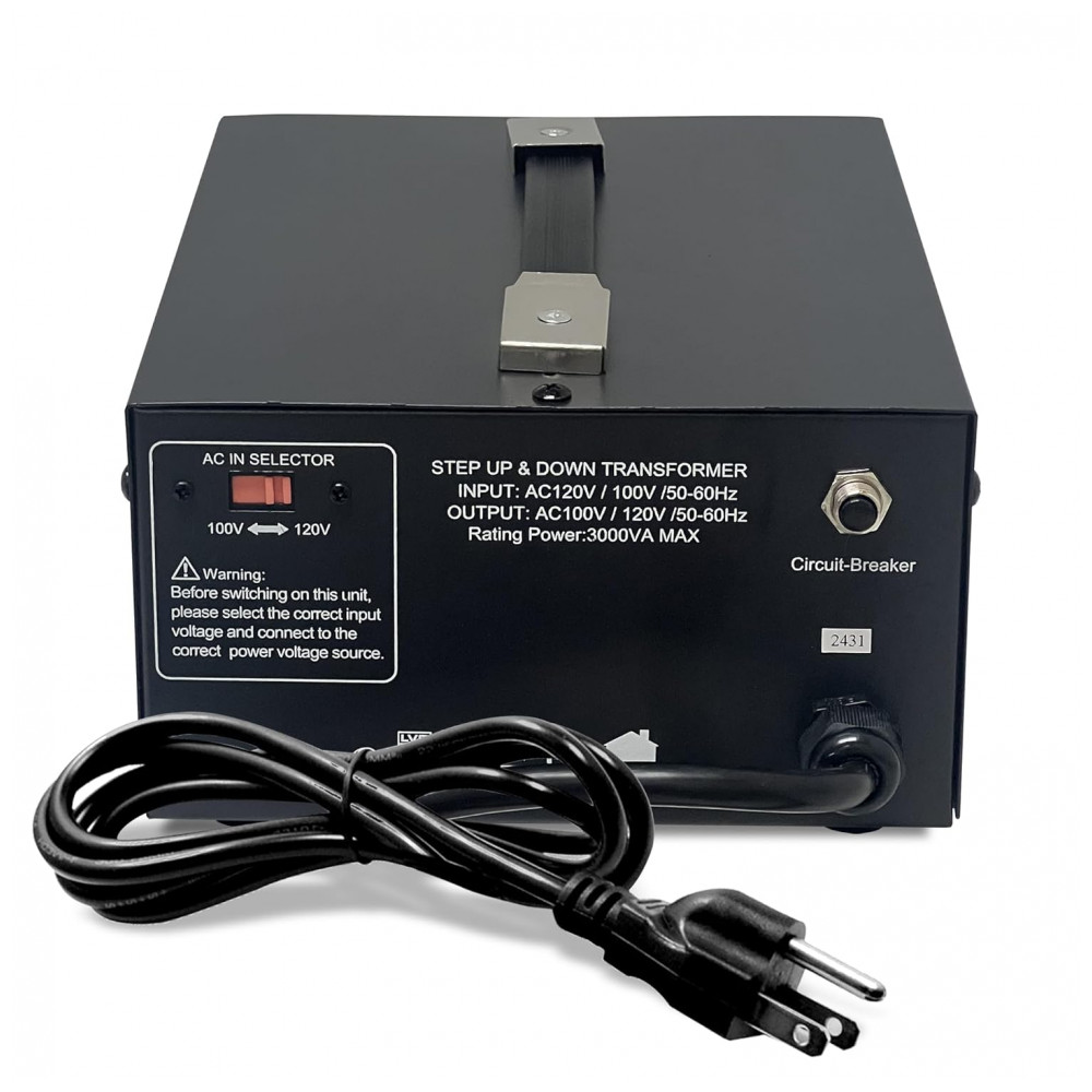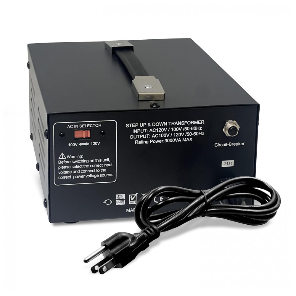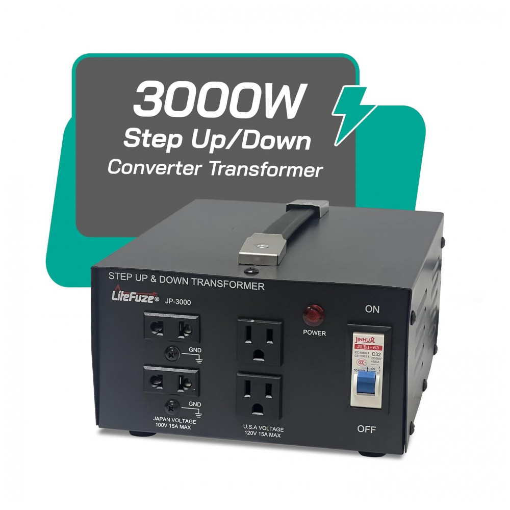 Transformador (Conversor) de Voltagem Japonês LiteFuze 3000W eleva/reduz 100V para 120V/120V para 100V com fusível e aterramento CE JP-3000.