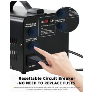 Inclui bobina de cobre puro e disjuntor resettável que restaura automaticamente o circuito mediante pressão do botão em situações de sobrecarga, com proteção integral contra fusão e sobrecorrente em toda a faixa de uso. Certificações FC, CE e RoHS atestam a qualidade para aplicação mundial em dispositivos até 1500W, abrangendo ferramentas elétricas e motores com demanda inicial de 2-4 vezes a potência nominal. Suporte a envio para endereços militares APO/FPO/DPO, com cabo padrão US (exige adaptador para redes 220-240V).