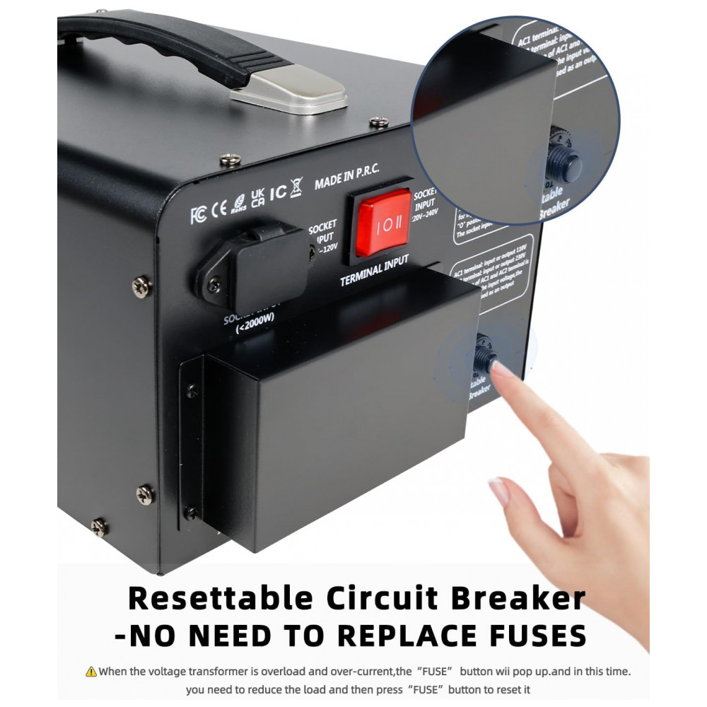 Transformador Conversor de Voltagem LVYUAN 5000W Preto Hard-Wired Step Up/Down 110-120V/220-240V VTUS-5000-PRO