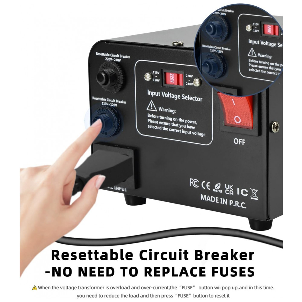 Equipado com bobina de cobre puro e disjuntor resettável que restaura o circuito por simples pressão do botão em sobrecargas, oferece proteção integral contra fusão e sobrecorrente em toda a faixa operacional. Certificações FC, CE e RoHS validam a construção média duty para uso mundial com aparelhos até 800W, considerando picos iniciais elevados em ferramentas e motores. Suporte a envio para endereços militares APO/FPO/DPO, com cabo padrão US exigindo adaptador para redes 220-240V.