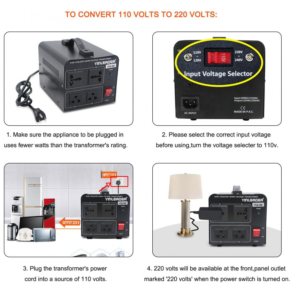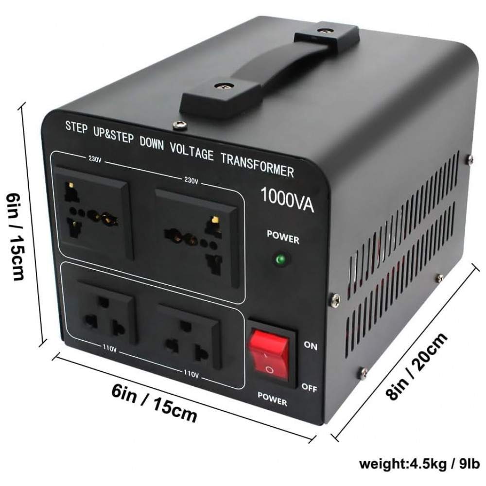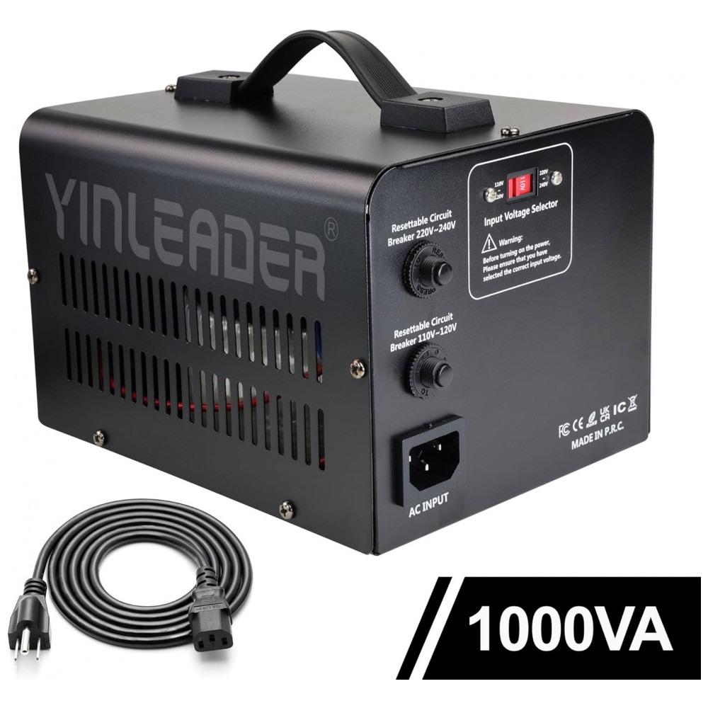 Transformador de Tensão 1000W Converta 220V para 110V e 110V para 220V Yinleader VTF 1000VA Preto