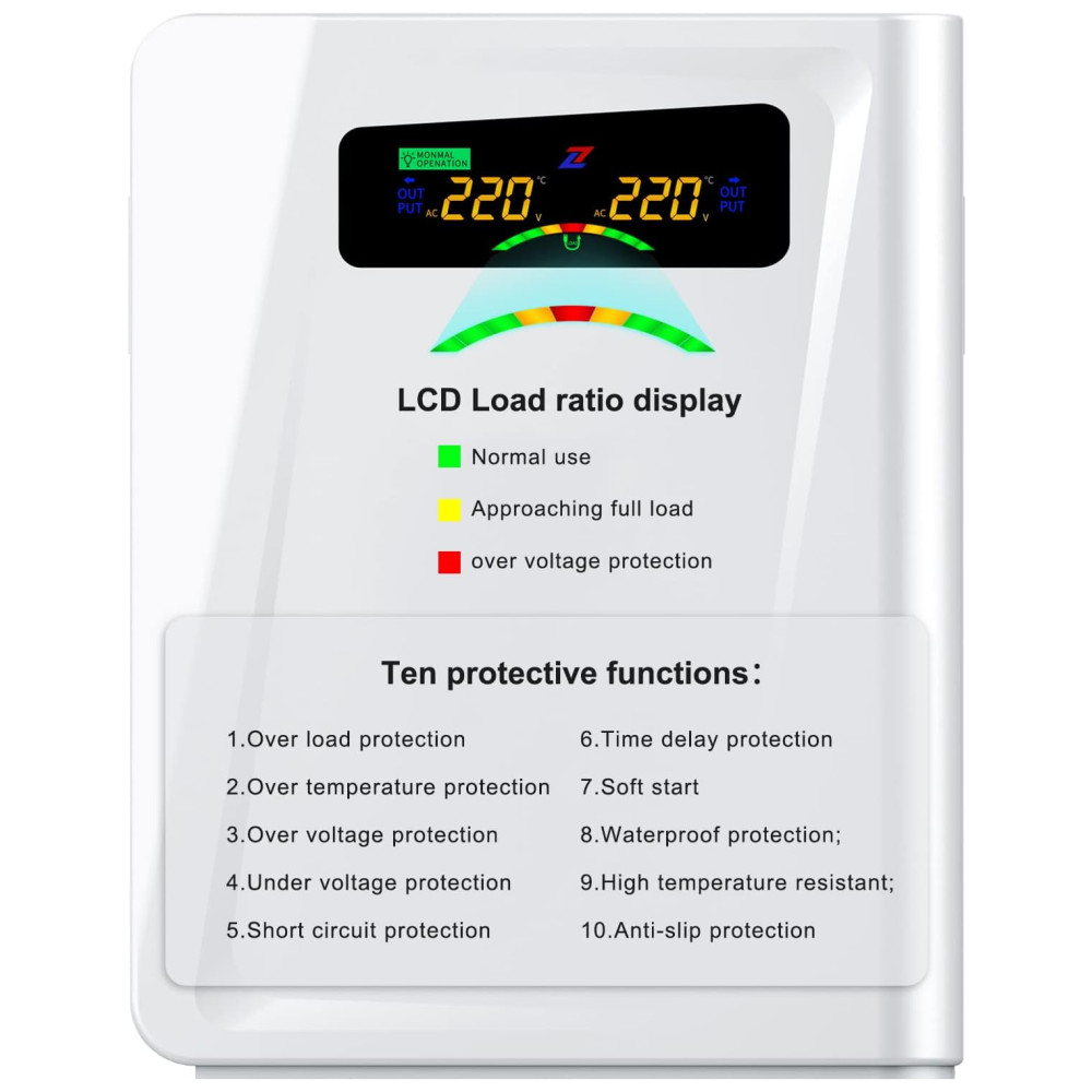 Transformador de Tensão 110V para 220V ou 120V para 240V Potência de 2000W com 10 Funções ZHENGXI Branco