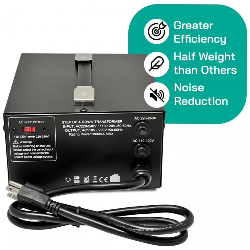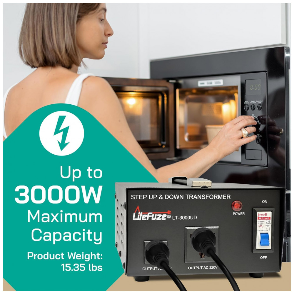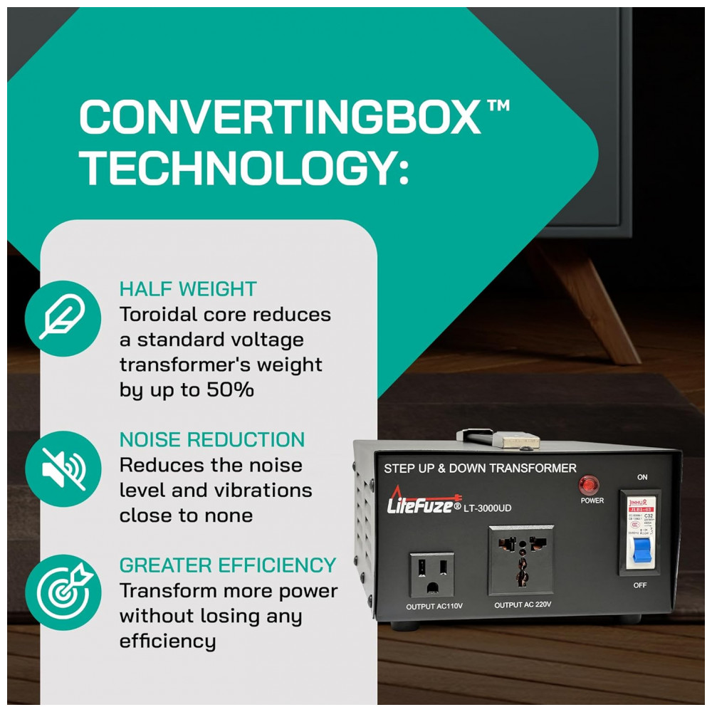 Transformador de Tensão 3000W Converte 110V para 220V ou 220V para 110V LiteFuze LT Preto