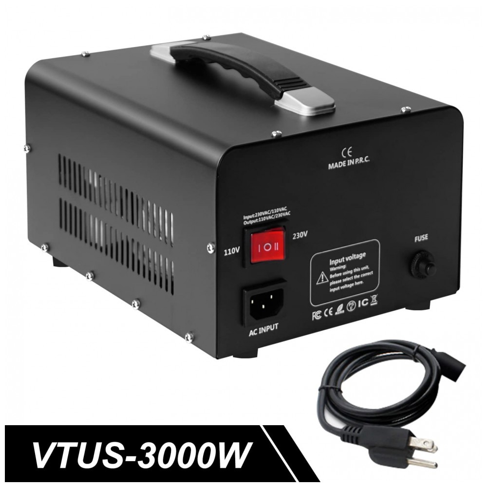 O transformador VTUS 3000 é compatível com entradas de 110V ou 220V e conversores de 110V a 220V ou 220V a 110V, que é em vários aparelhos elétricos domésticos e internacionais.